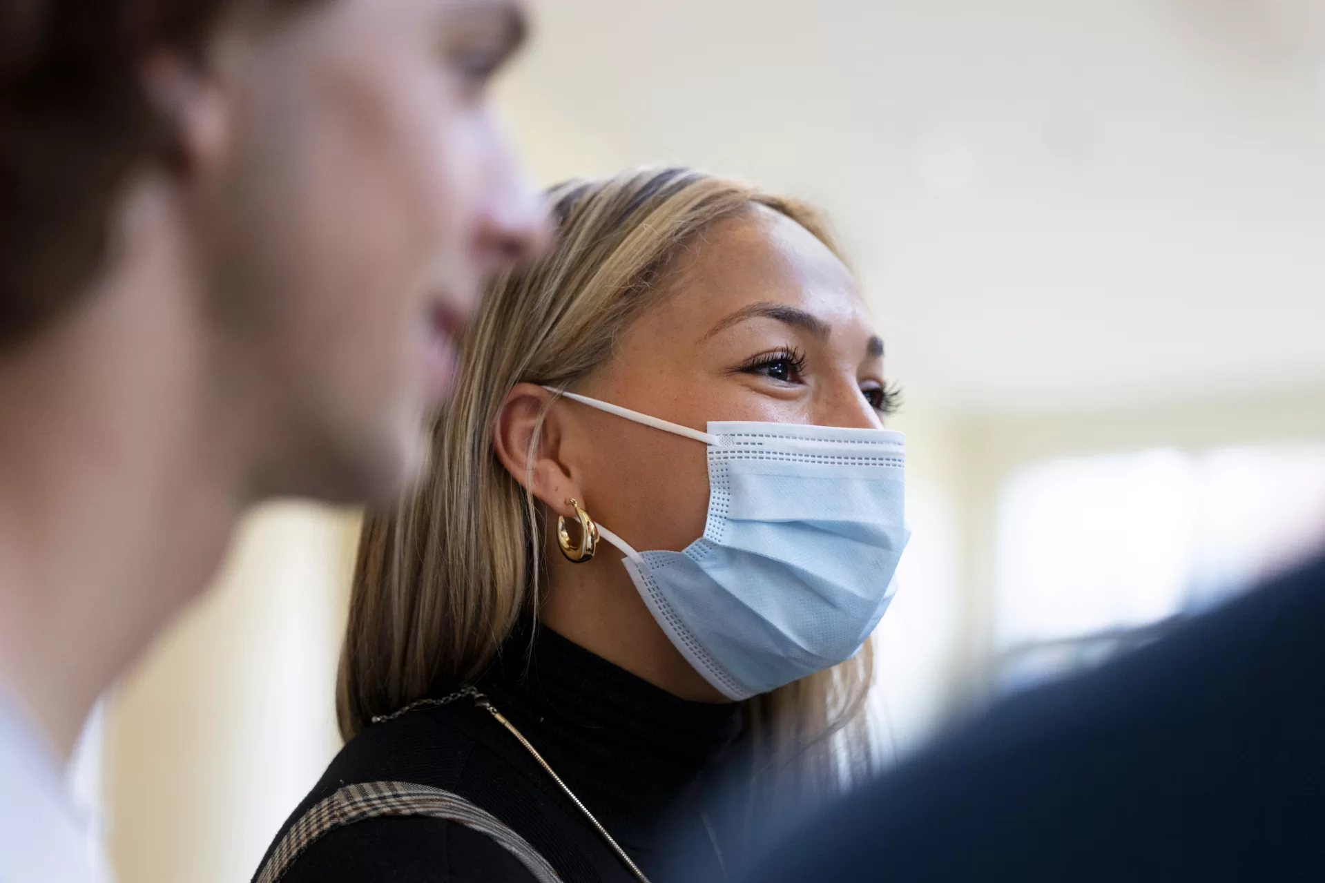 In a ground-floor classroom we found Eben Cook ’22 of Wallingford, Conn. He’s been a fan of rap since middle school. He loves the storytelling nature of the genre and he appreciates the diverse perspectives in the rap scene. Unfortunately, rap has a bad reputation, which is rooted in racism, he explained during a sociology panel discussion.