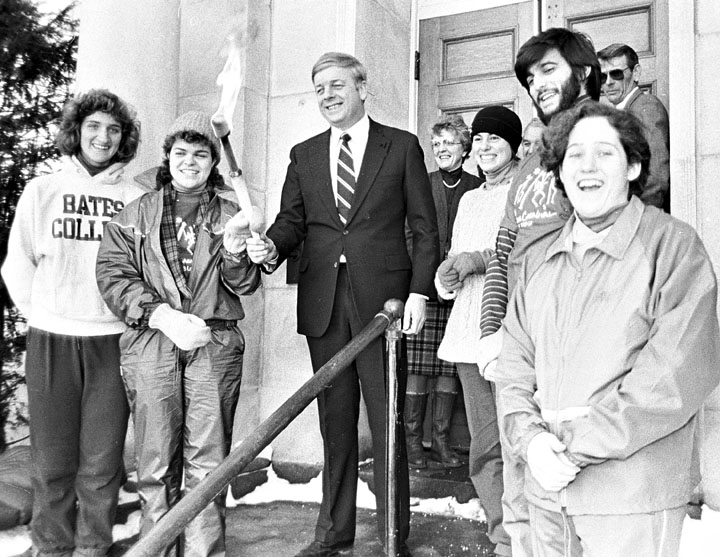 Since then, Maine governors (and at least one first lady) have lit the Bates carnival torch most years — some showing more panache than others, judging from this selection of photos from the 1950s to 1980s photos, courtesy of the Muskie Archives and Special Collections Library.