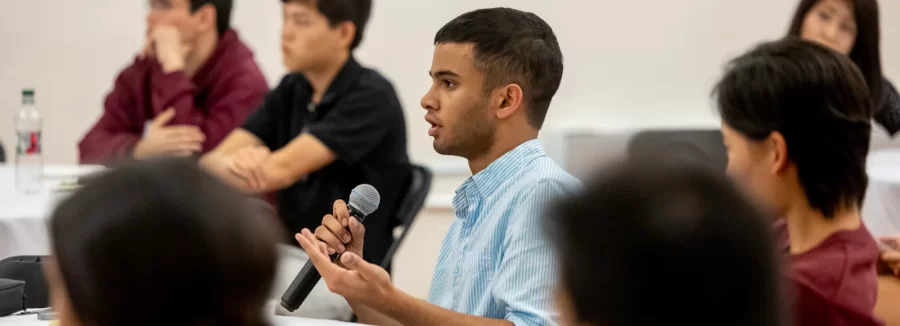 The trio, Professor of Politics John Baughman, Professor of Politics Stephen Engel, and Associate Professor of Politics Clarisa Pérez-Armendáriz met with around 75 students in Memorial Commons in Chase Hall.