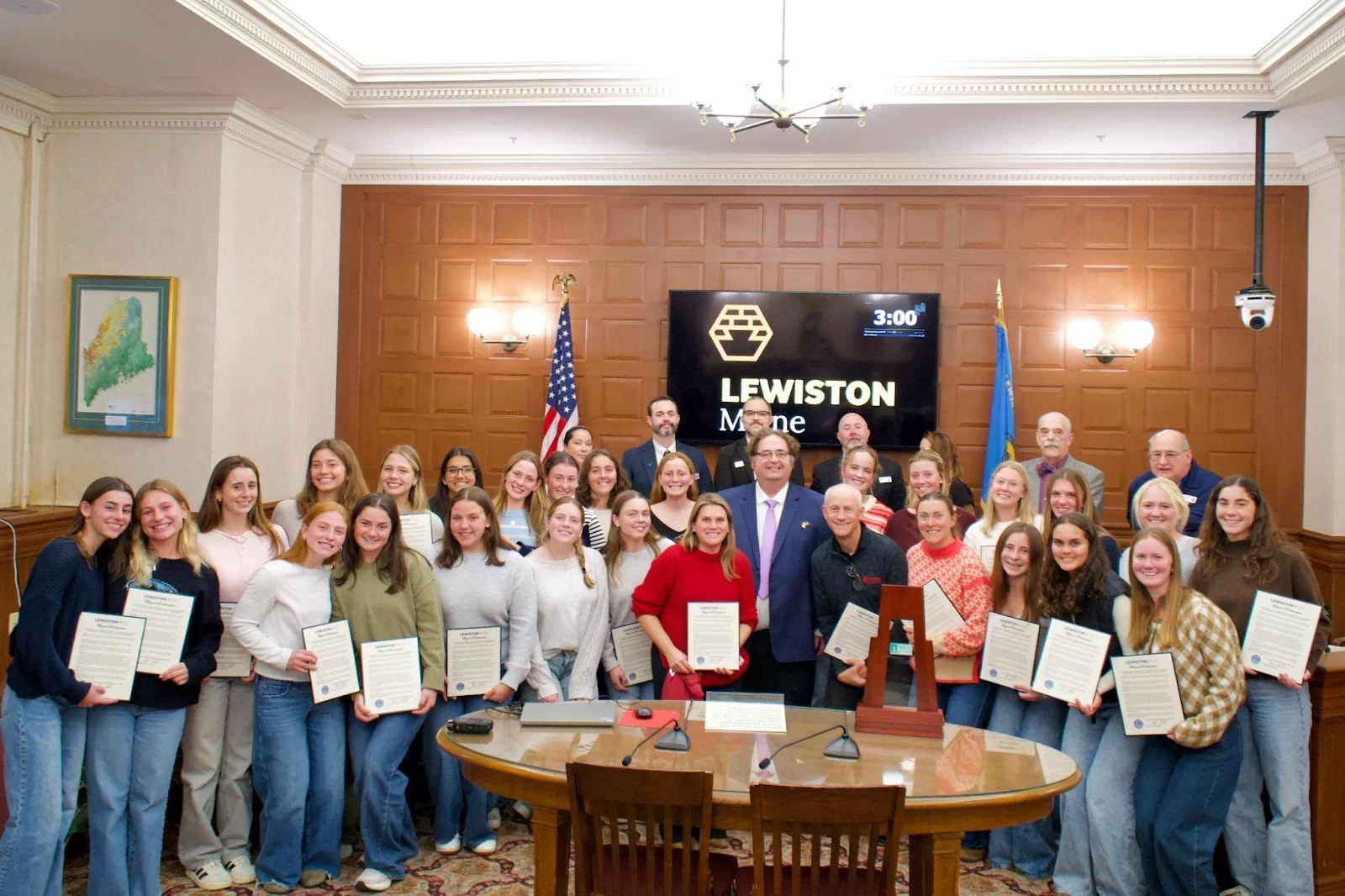 The team concluded the season with a special team gathering at President Jenkins’ house and was honored with a mayoral proclamation by the mayor of Lewiston.