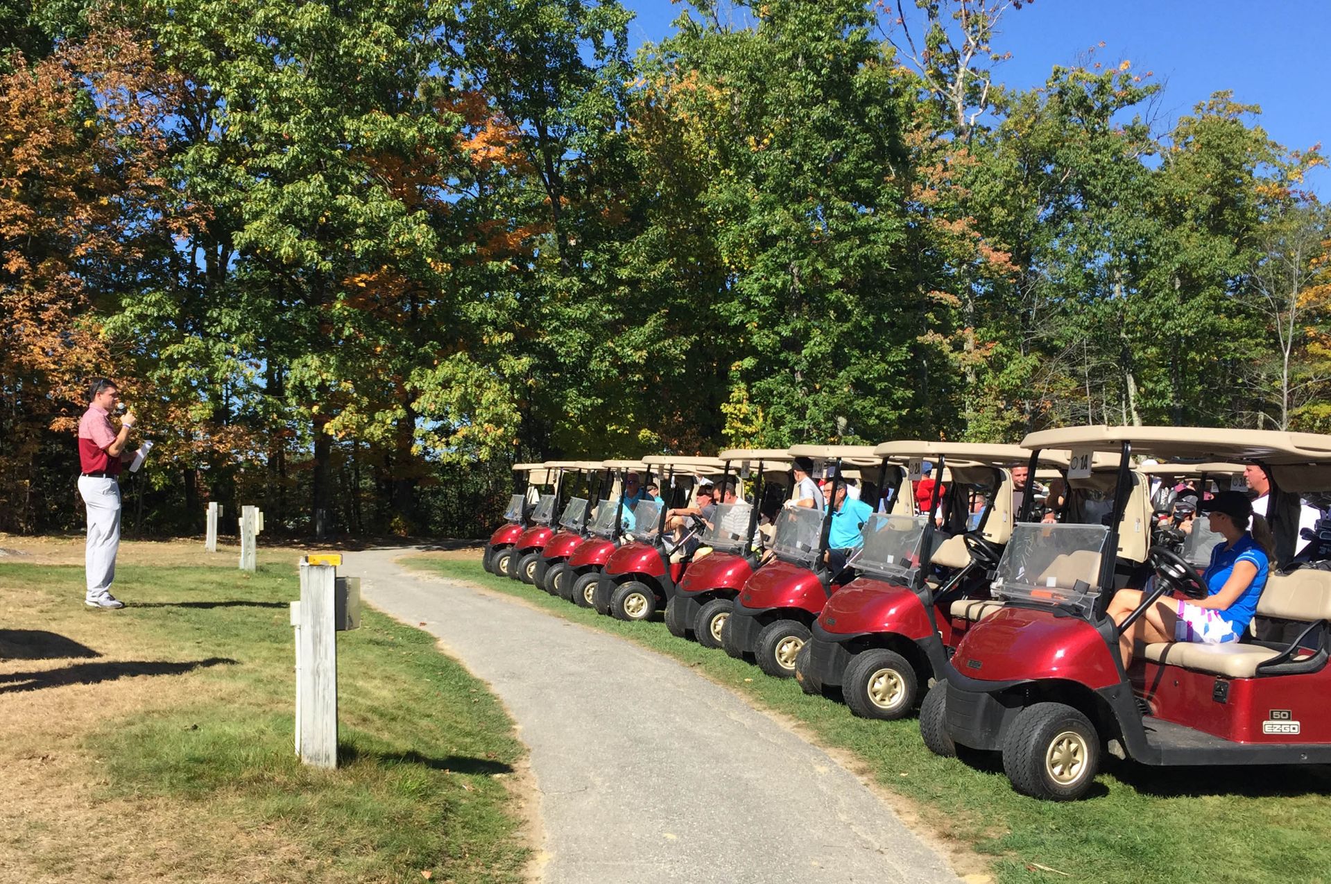 All golf registrations include greens fees, cart rental, lunch, and reception.