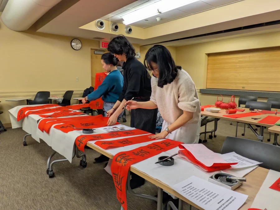 On Monday, February 9th, students gathered for a hands-on celebration of Lunar New Year traditions led by Emma Hsu and Gongshi Huang ’25. Participants practiced the art of Chinese calligraphy, creating hand-written couplets filled with auspicious wishes—a staple of New Year decorations in the Chinese-speaking world. In addition to these couplets, attendees crafted decorative paper lanterns, bringing a glow of festive spirit to the Asian Studies department.