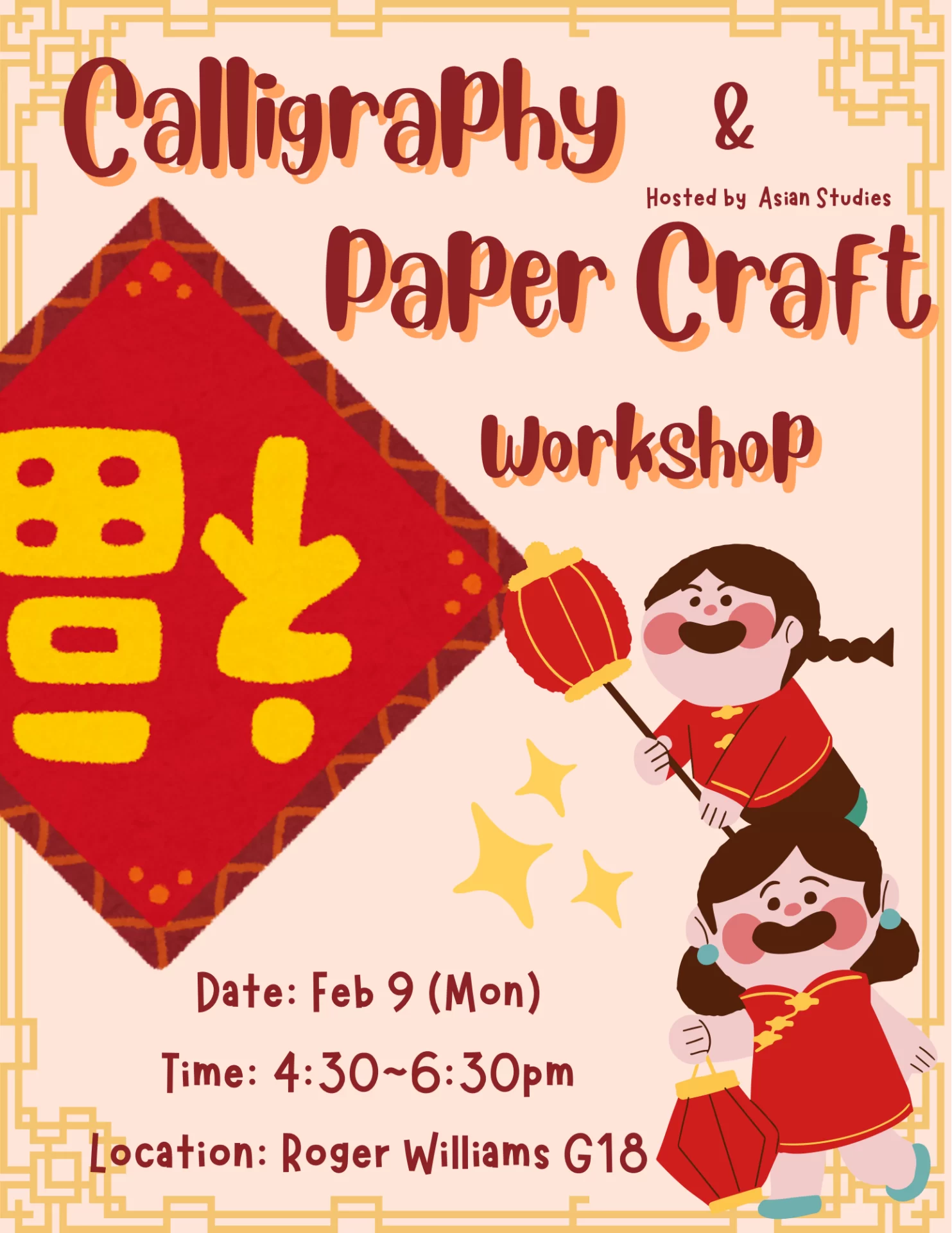 On Monday, February 9th, students gathered for a hands-on celebration of Lunar New Year traditions led by Emma Hsu and Gongshi Huang ’25. Participants practiced the art of Chinese calligraphy, creating hand-written couplets filled with auspicious wishes—a staple of New Year decorations in the Chinese-speaking world. In addition to these couplets, attendees crafted decorative paper lanterns, bringing a glow of festive spirit to the Asian Studies department.