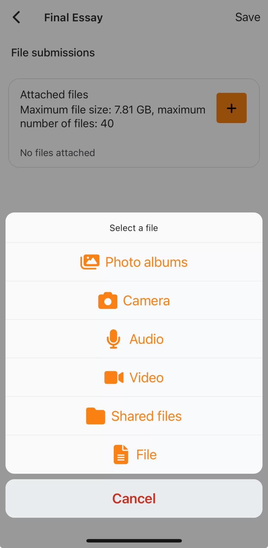 Follow the steps below to submit an assignment using the Moodle app: