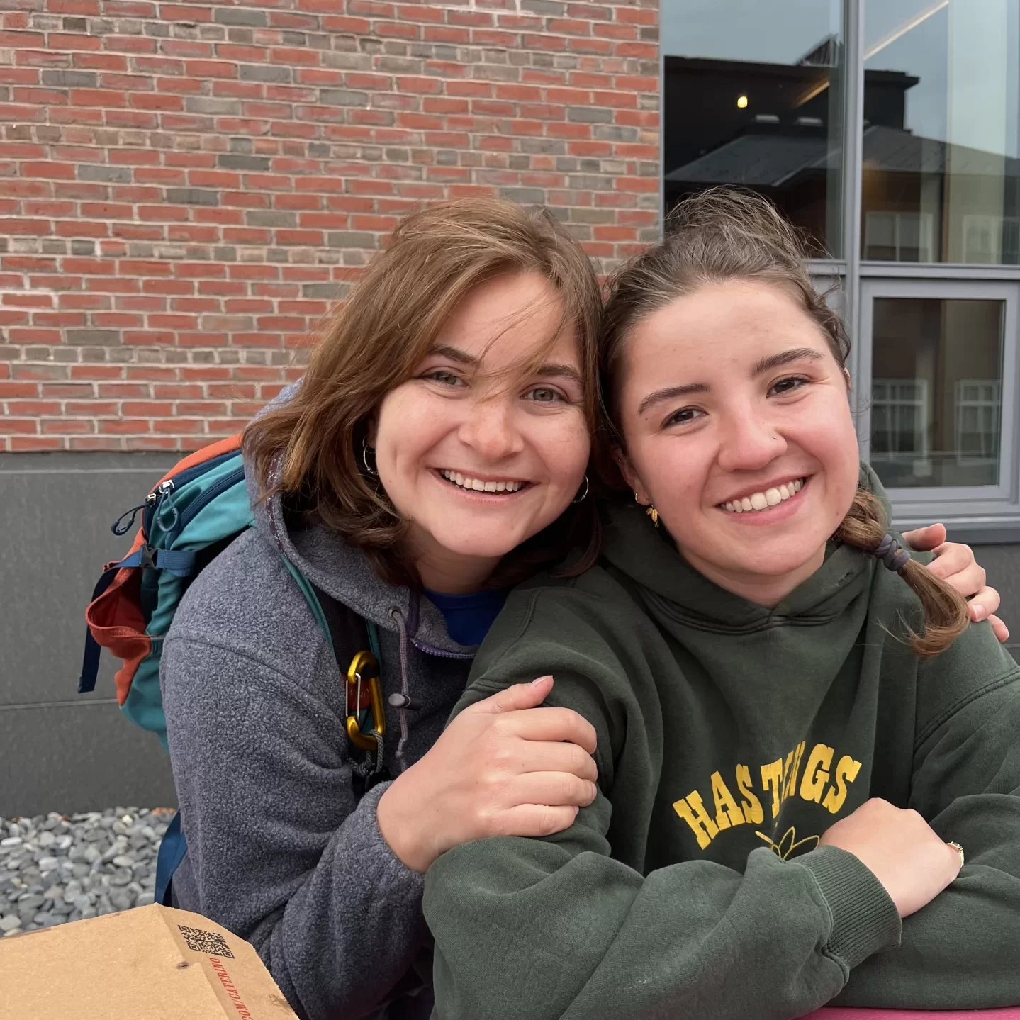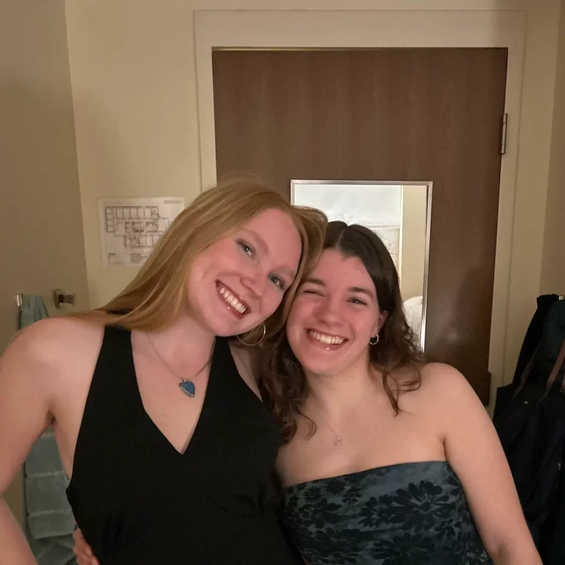 Howdy cool cats! My name is Emma Randels-LaRocca, but if you forget my name I also respond to “hey you”! I am a rising junior all the way from New Orleans, Louisiana! I am SUPER DUPER excited to go Acadia Climbing with y’all (and Charlotte I guess) and even went on the same trip for my AESOP; I’m basically a pro, don’t worry! When I’m not climbing rocks I’m a Dance major and an Education minor and you’ll often find me around campus chasing Charlotte. If you guys have any questions about STEM you’ll have to ask each other or use google (jk we won’t have service). Charlotte is also working on her commons creations because she WILL NOT stop eating pesto pasta with peas and tofu; PLEASE HELP! Can’t wait to teach y’all some line dances and boil some crawfish with y’all! (P.S. don’t ask Charlotte about the Great Pink Eye Scare of 2025; re her glasses in that photo)