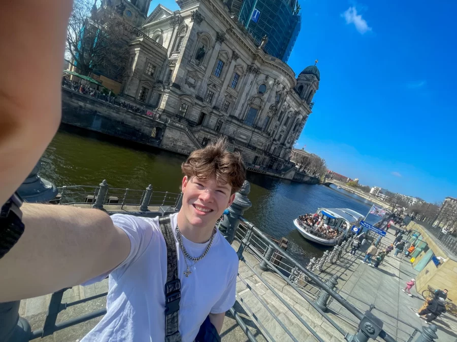 My name is Kai (ginger bread), and I’m a rising senior from Poland, Maine. I’m an Environmental Studies (in the ecology track), German double major with a minor in European Studies. Last summer, I did research with Professor Eric LeFlore on bobcat populations in Maine. I’m a born and raised Mainer who loves the outdoors and finding adventure. For me, that’s hiking, bouldering, photography, and urban exploring. As of 3/31/26, I’m still traveling abroad in Germany! When I’m at Bates, you can probably find me out on the quad, climbing trees during nice weather, or riding my skateboard to class. I’m looking forward to graduating, with plans for a gap year and a half working before traveling the US in a van!