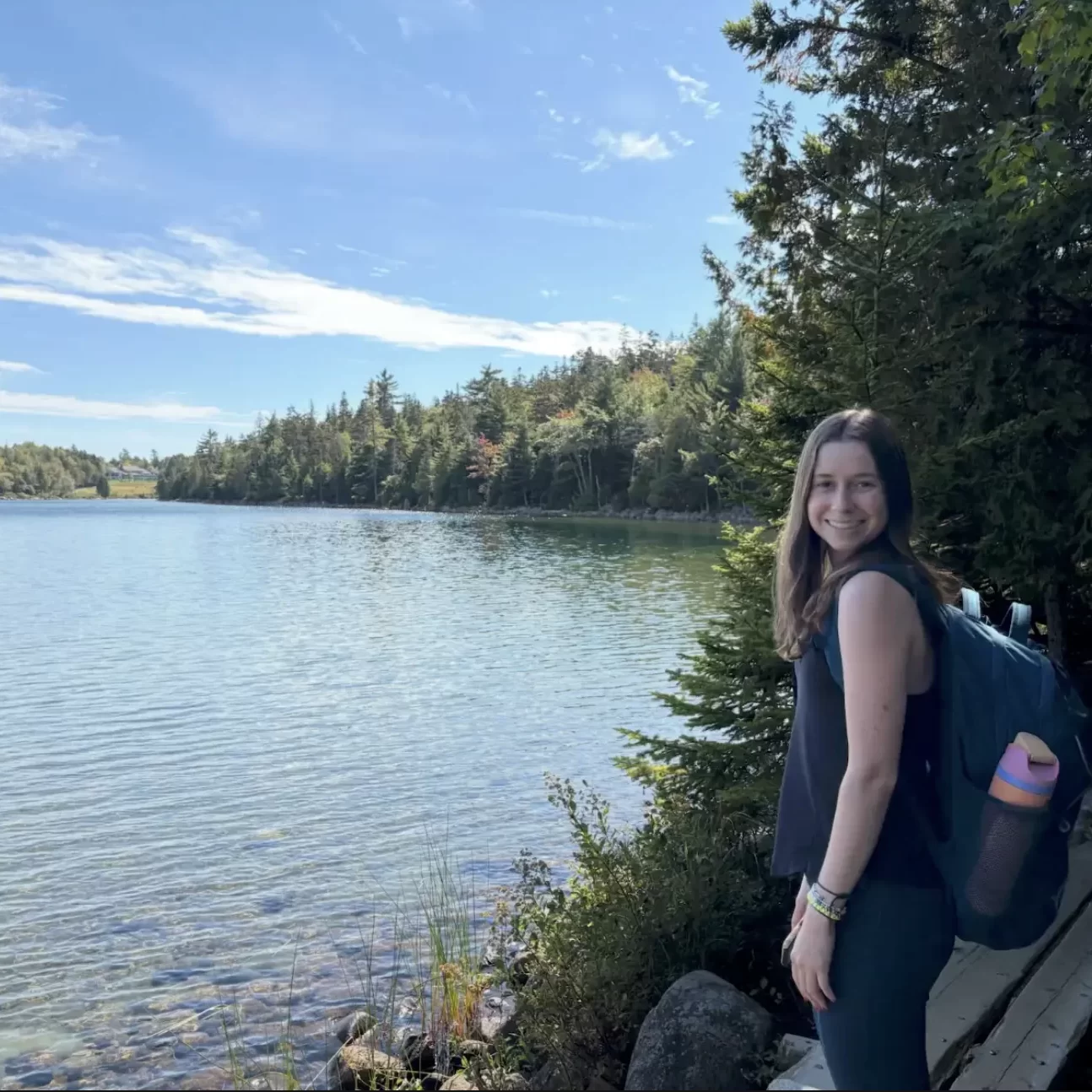 Meet my fabulous co-leader, Iulia Andrews (she/her)! Iulia hails from the charming riverside town of Croton-on-Hudson, NY and is a neuroscience major with a math and chemistry minor. When she’s not diving deep into research, you can find her giving campus tours to future Bobcats, tearing it up on the club lacrosse team, or singing her heart out with her a cappella group, the Meris. On top of it all, she’s inspiring young minds as a fourth-grade teacher at Geiger Elementary! It sounds like a lot — and it is — but trust me, Iulia handles it all with total grace and a huge smile. She’s beyond excited to get outside, hit the trails, and show you all the best spots in Acadia (and trust, she has frequented Acadia more than a few times)! She’s so excited to hangout with all of you and soak up all the beautiful scenery of Acadia together!!