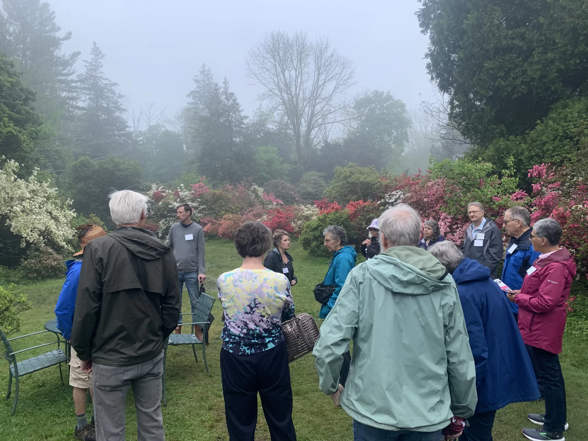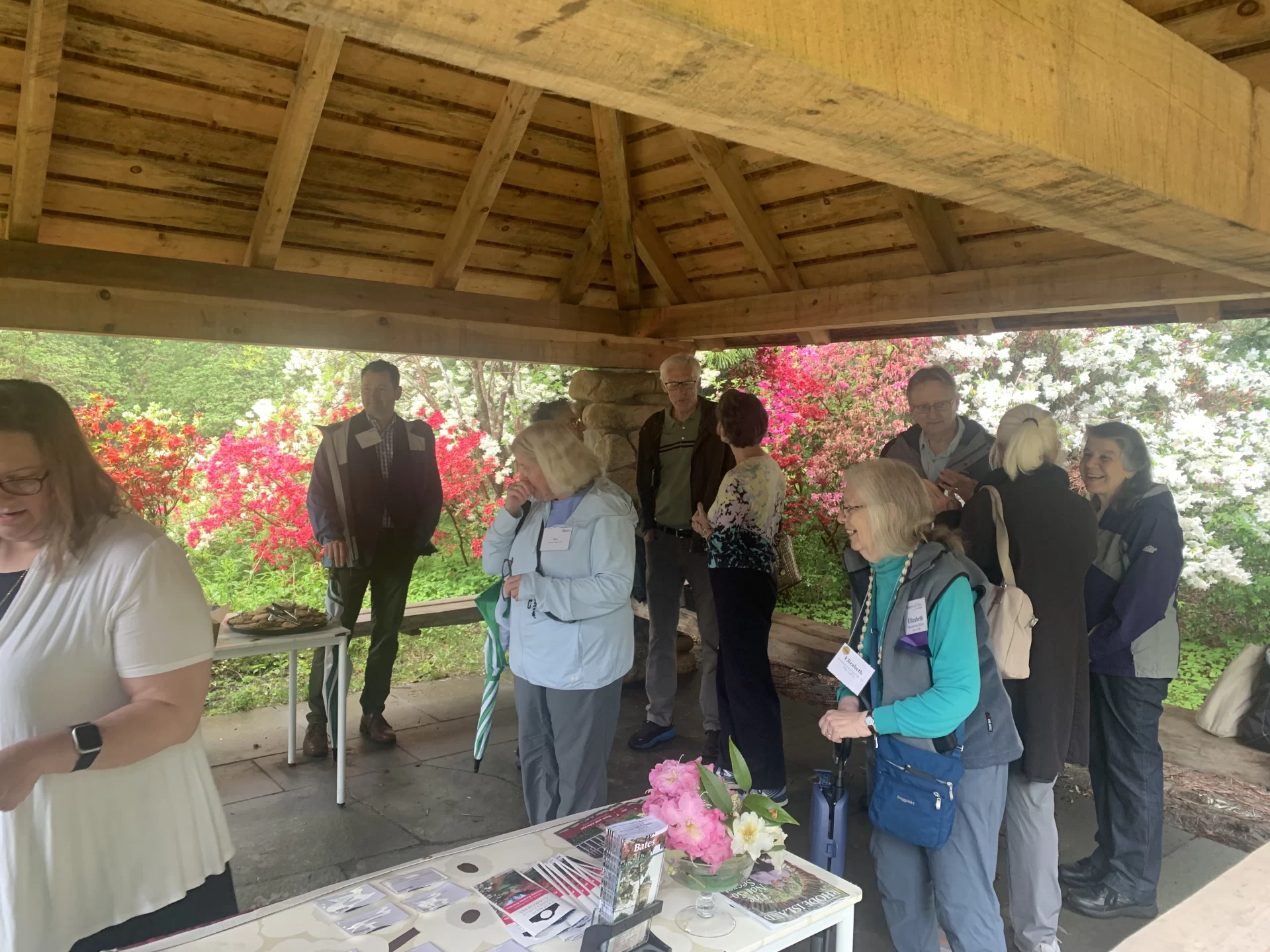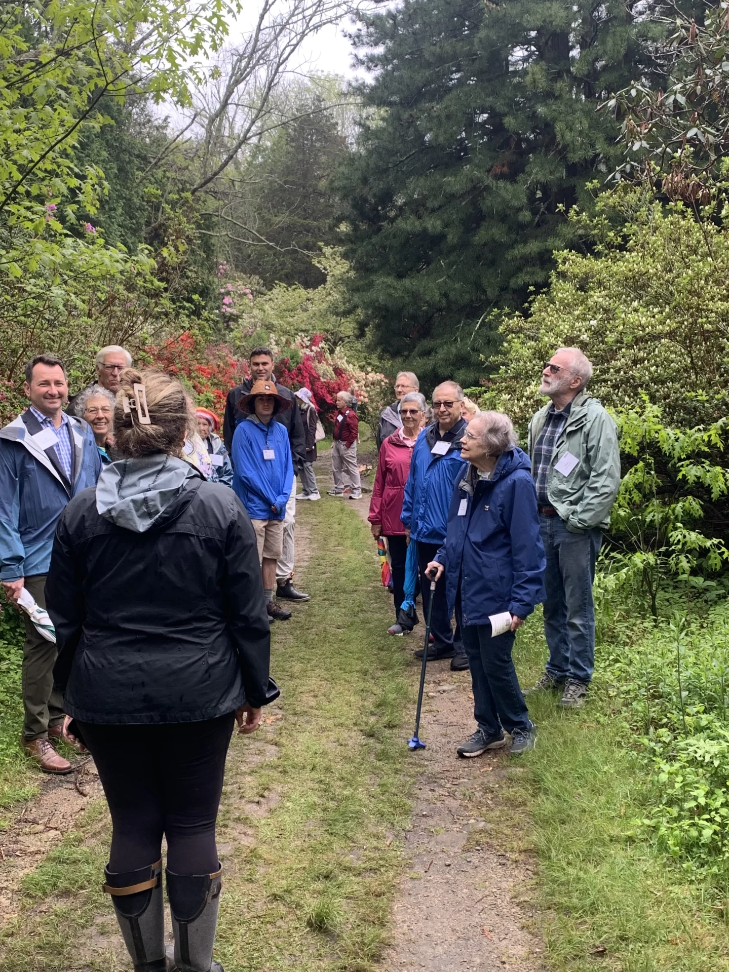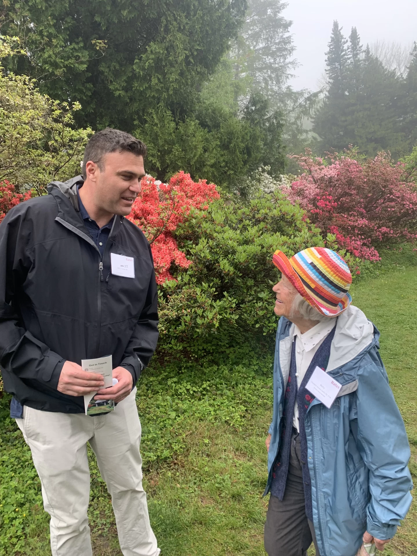 The Bates community gathered on Thursday, May 15, 2025, for a delightful springtime stroll at the stunning Kinney Faella Azalea Gardens in Rhode Island. This beautiful space, with deep ties to Betty Kinney Faella ’51 and her family, was in full bloom, providing an enchanting setting for Bobcats to reconnect.