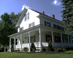 Standing next to historic Libbey Forum and christened in honor of Robert Dunn ’50, L.H.D. ’99 and Gladys Bovino Dunn ’51, the 19th-century farmhouse has become the first ever Bates College guest house. The three-floor house offers five guest rooms for special visitors, including honorary degree recipients, acclaimed speakers or performers, and other friends of the College. A three-room common space dominates the first floor, while the second floor features three bedrooms. The third floor features a suite of rooms. A handicapped-accessible room adjoins the main building on the first floor.