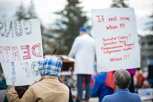 For many Americans, a key answer to those questions is too-easy access to guns. Many people throughout the country have been advocating for years for better gun control but have seen little change. Here in Maine, we have some of the laxest gun laws in the nation, including “Constitutional Carry,” which allows for the carrying of concealed weapons. Researchers note that “Maine has very few foundational gun safety laws. Despite 89% of gun deaths in the state being the result of suicide, the Pine Tree State lacks most basic laws that would help reduce suicide, including background checks for all gun sales, an Extreme Risk law, and waiting periods. Maine is also a permitless carry state.” (Everytown Research). As a result, gun control rallies are unfortunately not rare, and one took place in the capital city of Augusta in the aftermath of Lewiston’s mass shooting.
