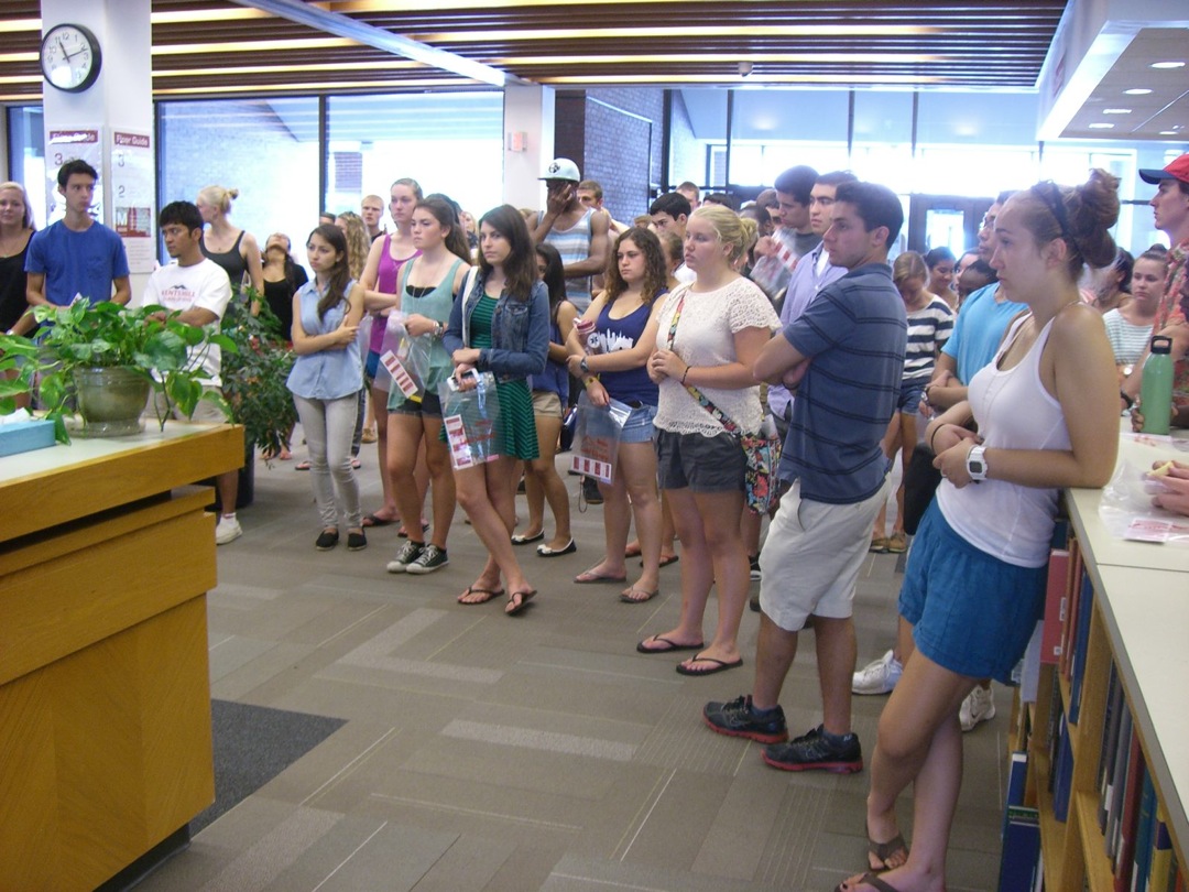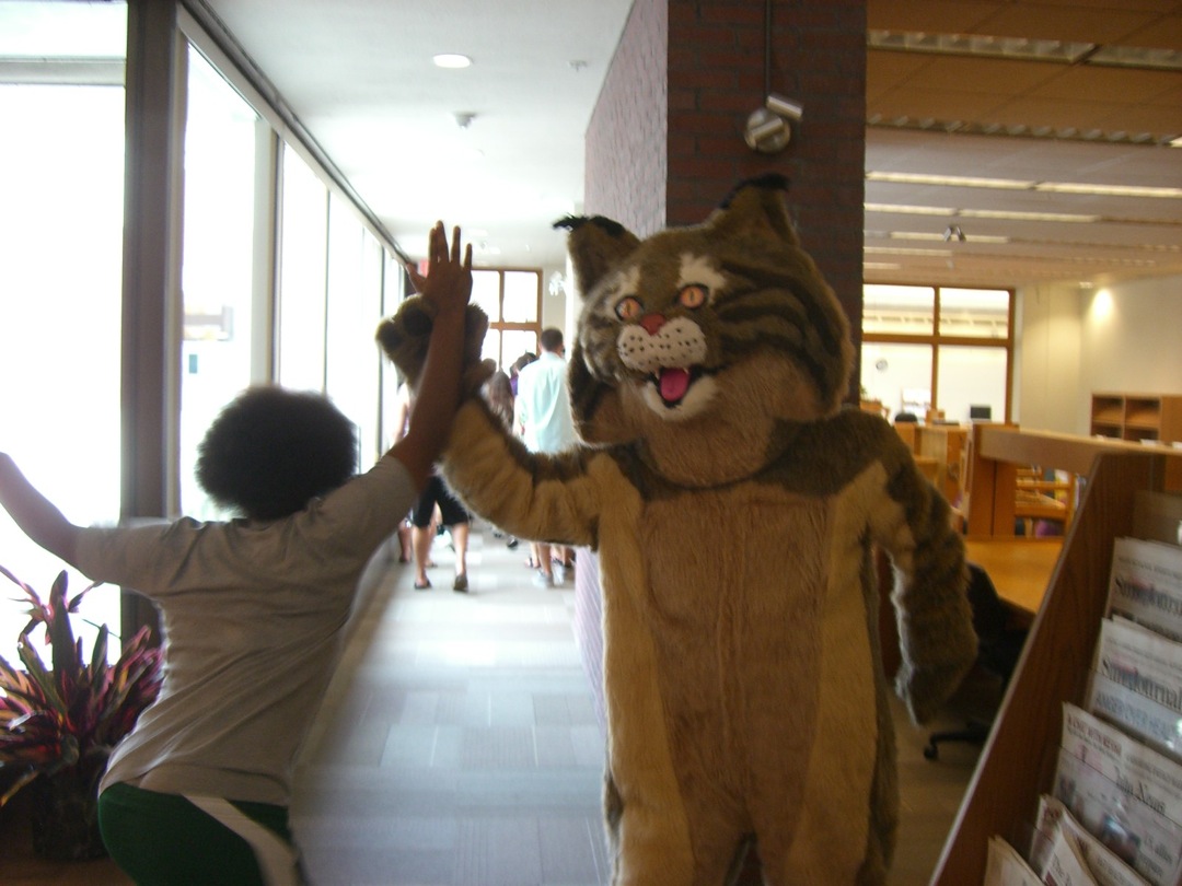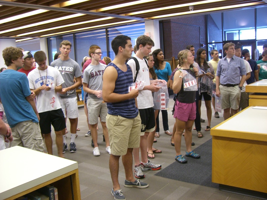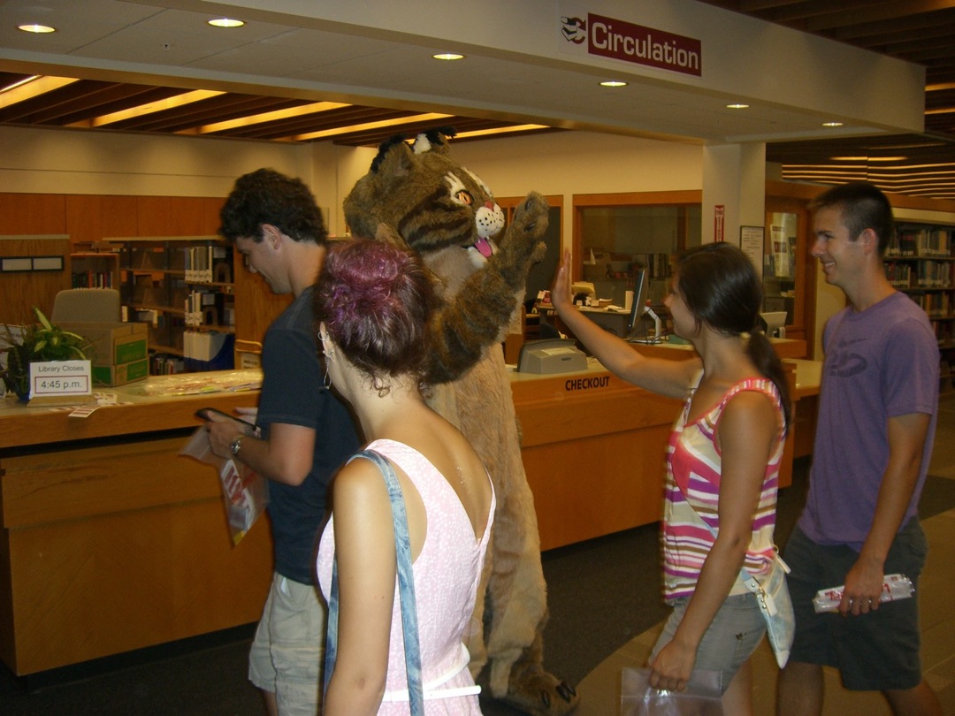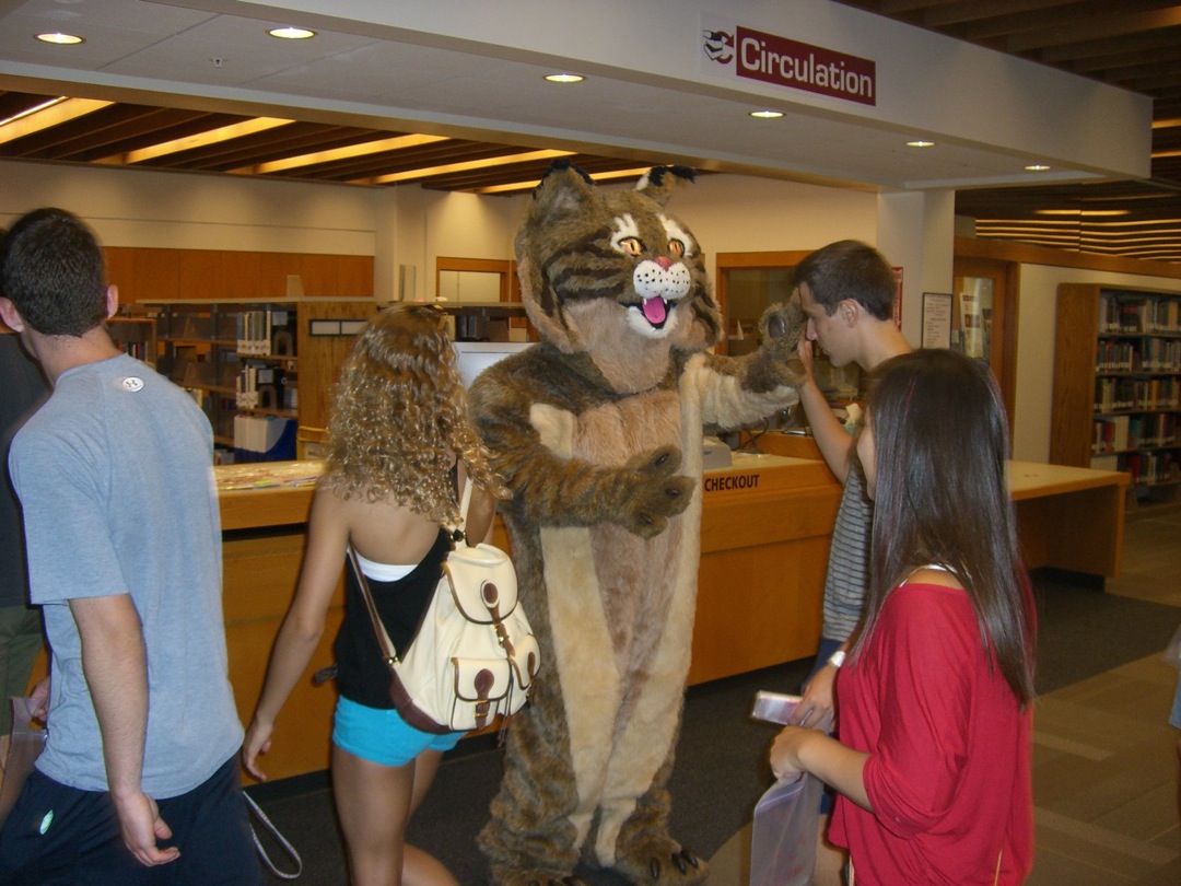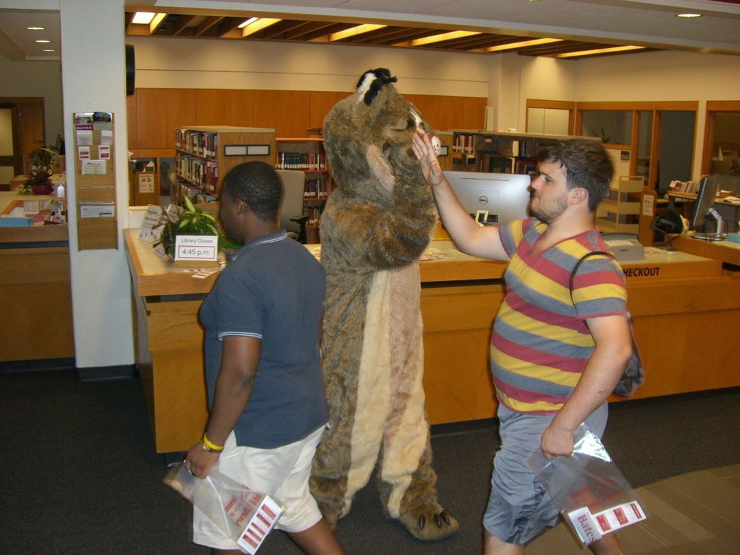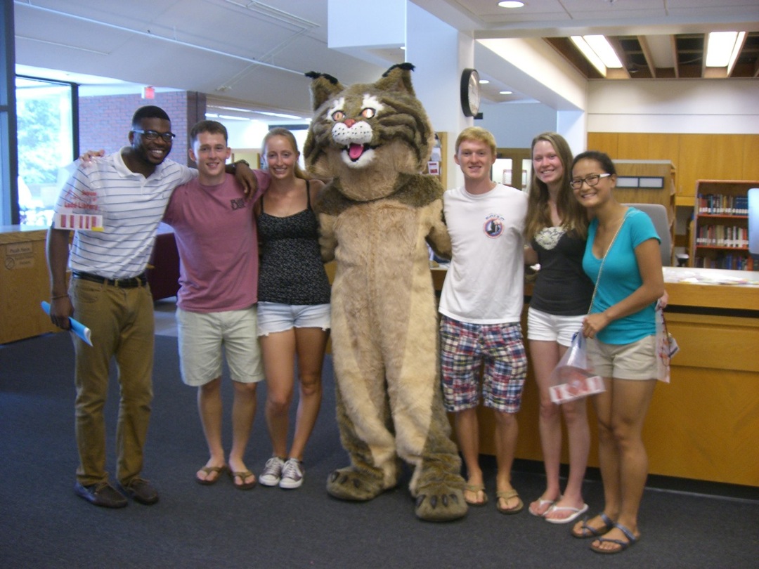 Ladd Library welcomed First-Year Students to Bates on Sunday, September 1, 2013. Students visited Circulation, Research Services, the Help Desk, the Peer Writing Center and Audio Services to see the range of services available, and the Bates Bobcat was on hand for pictures and high-fives.