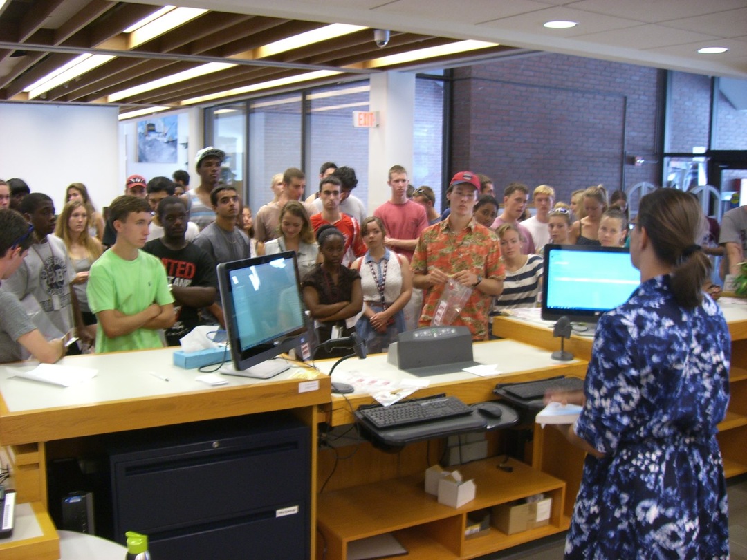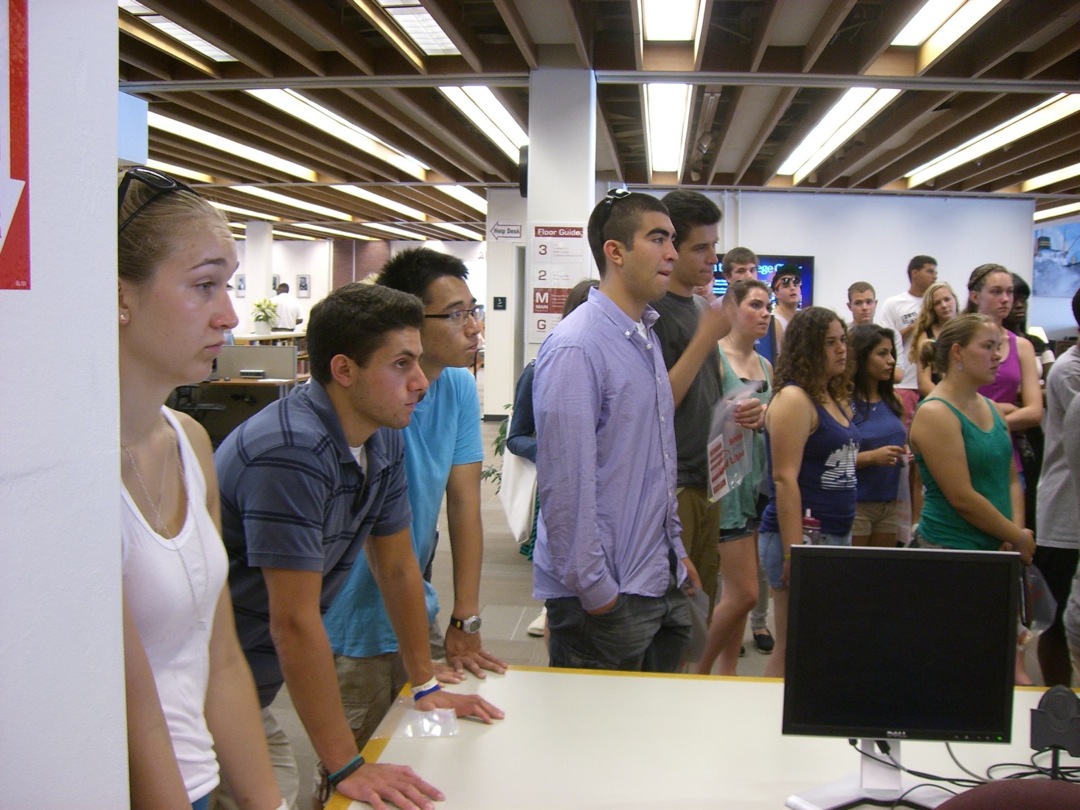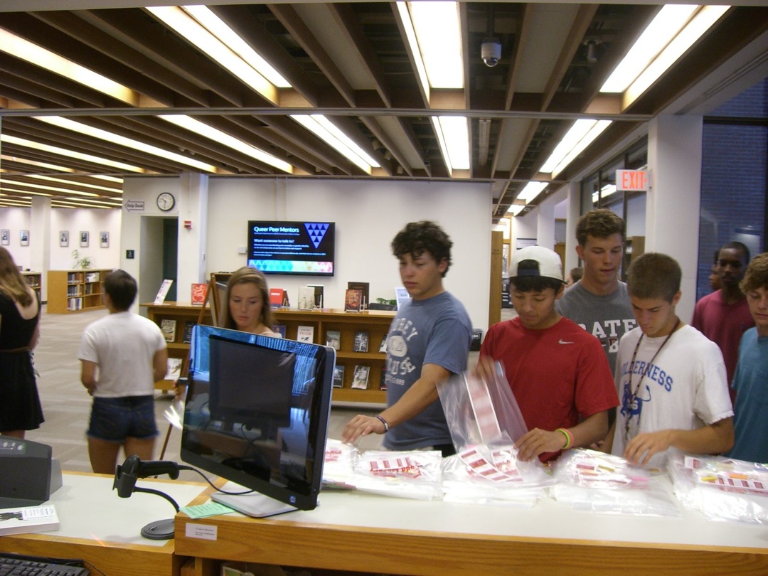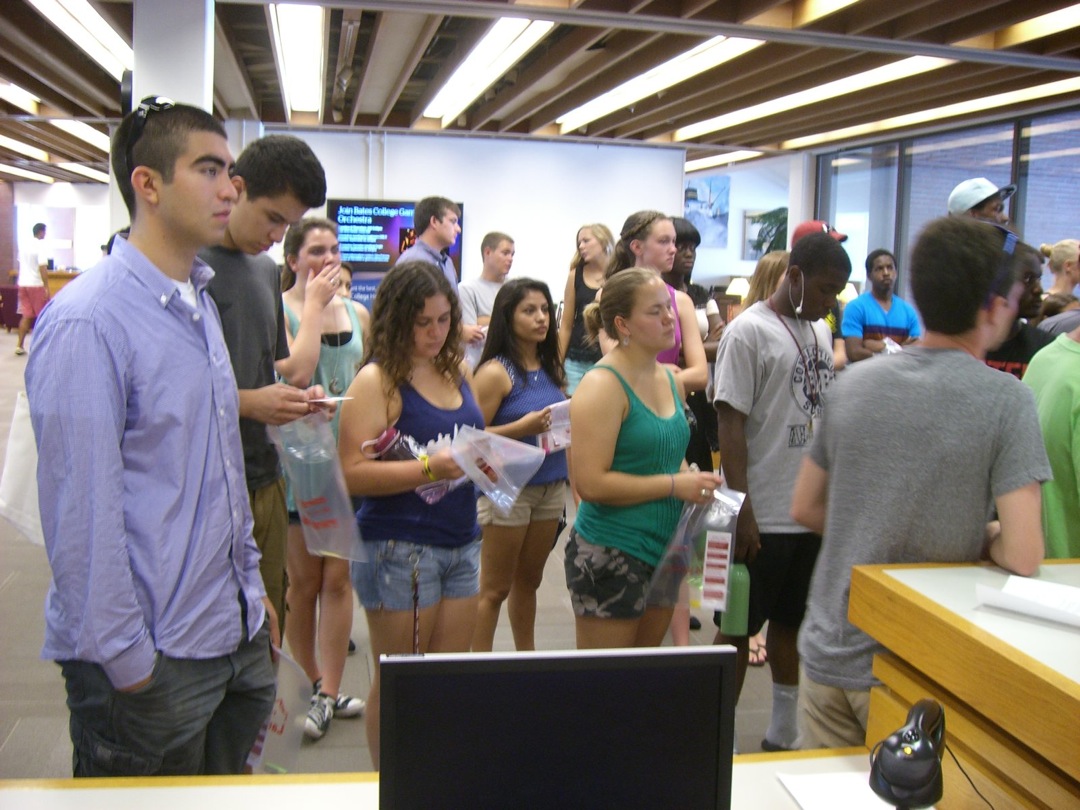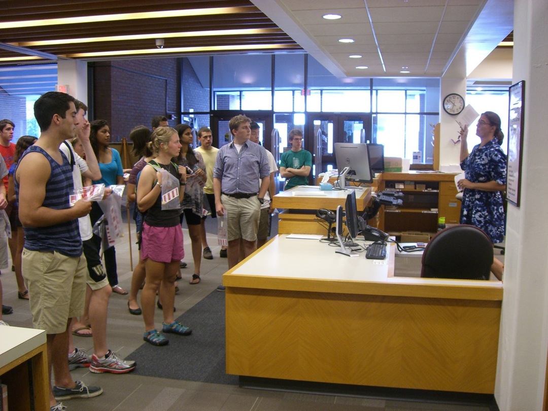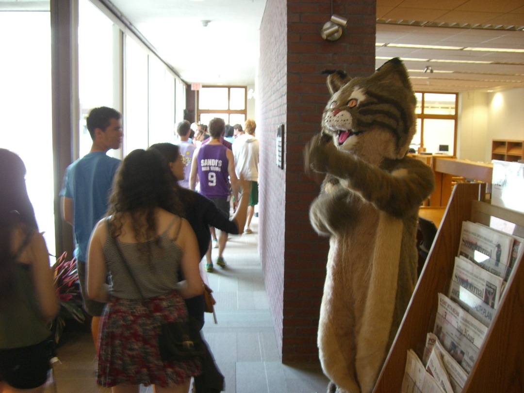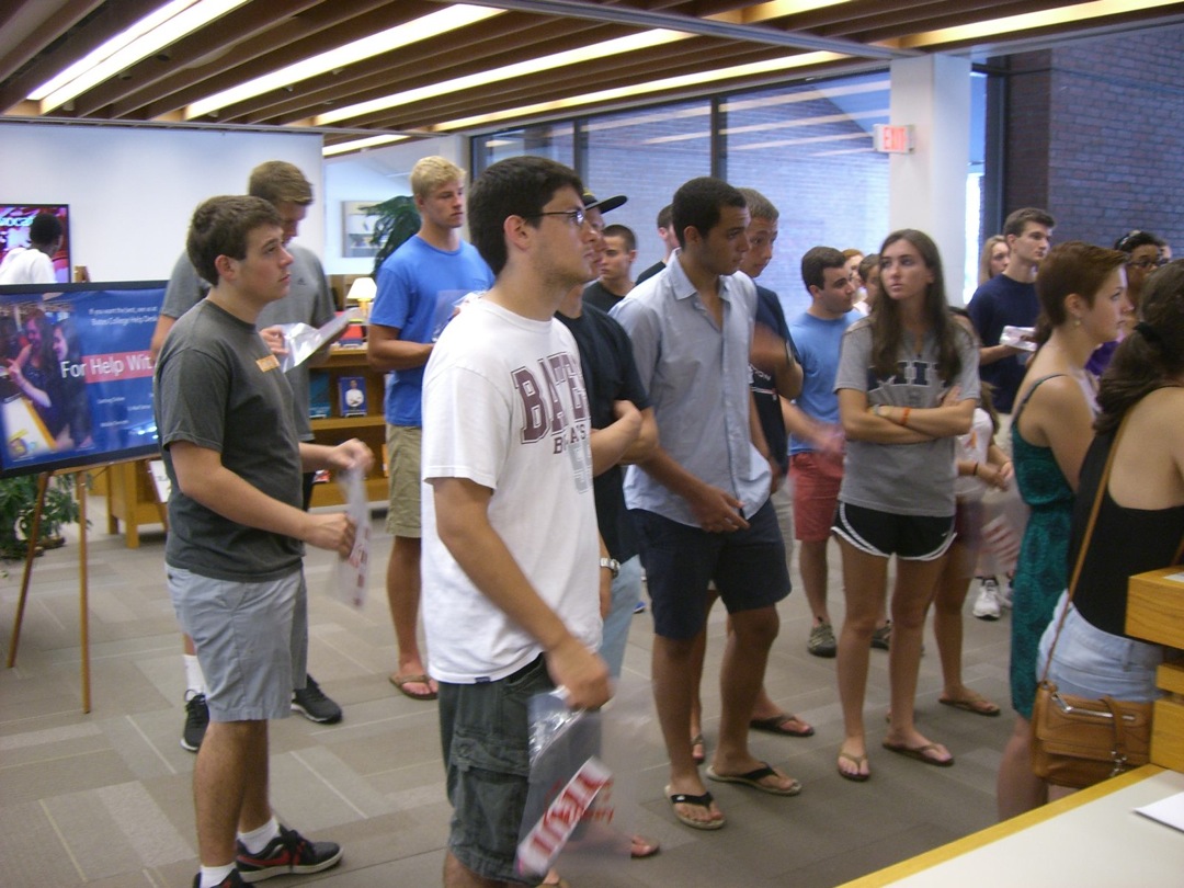 Ladd Library welcomed First-Year Students to Bates on Sunday, September 1, 2013. Students visited Circulation, Research Services, the Help Desk, the Peer Writing Center and Audio Services to see the range of services available, and the Bates Bobcat was on hand for pictures and high-fives.