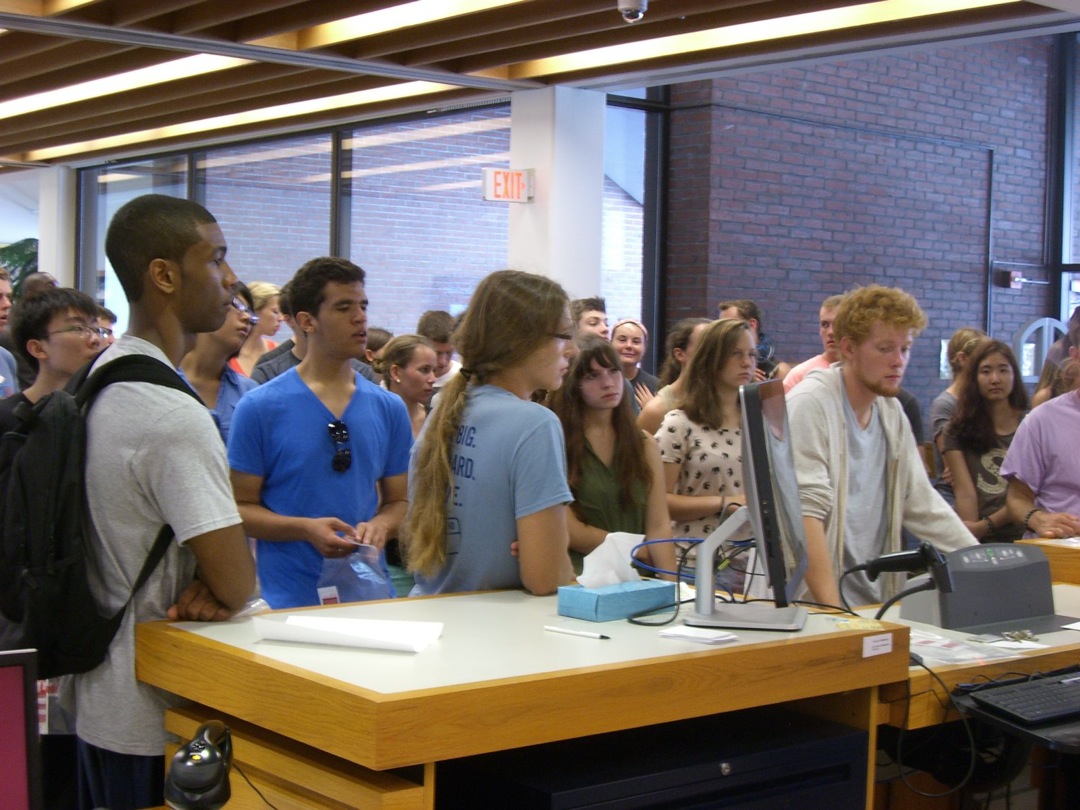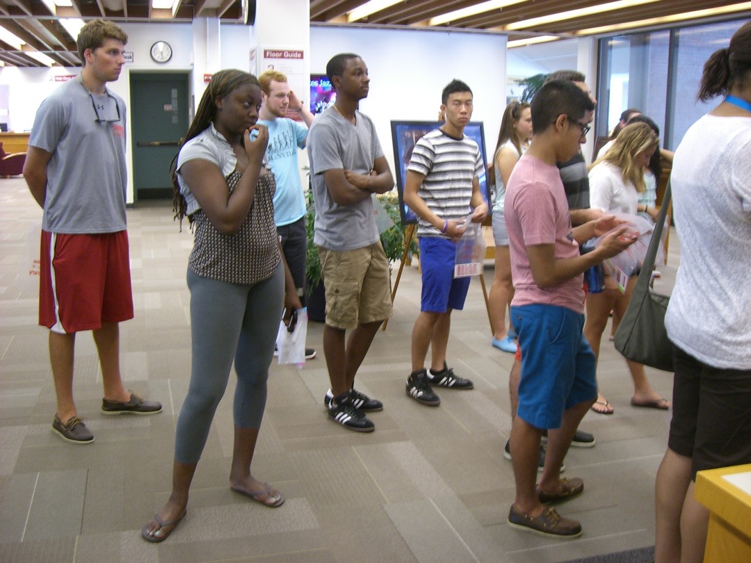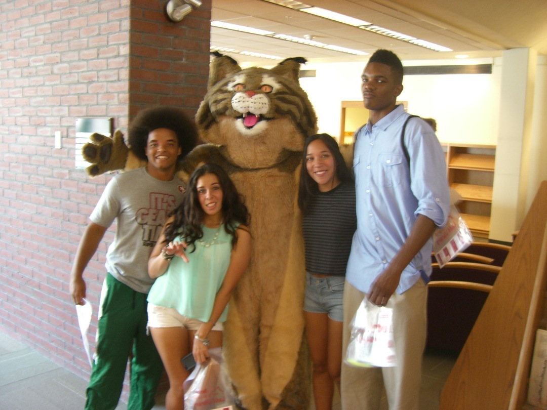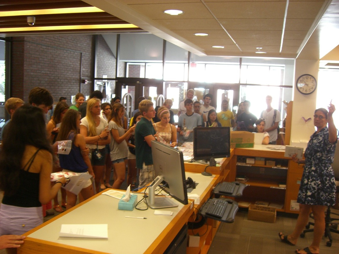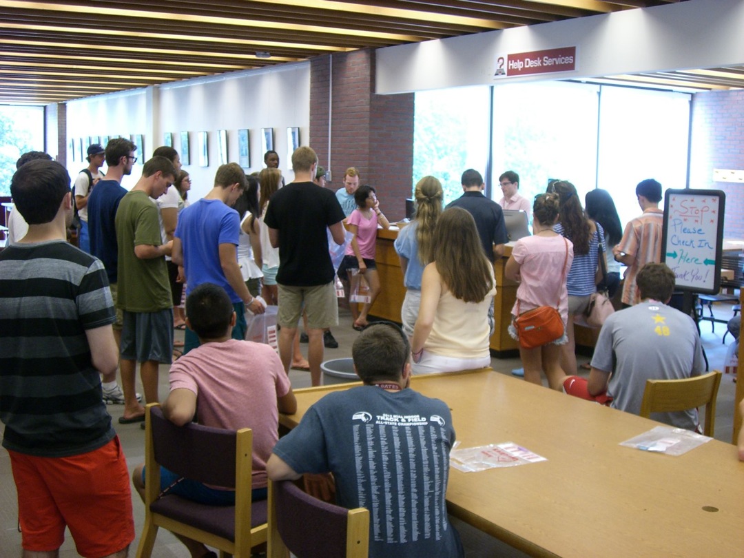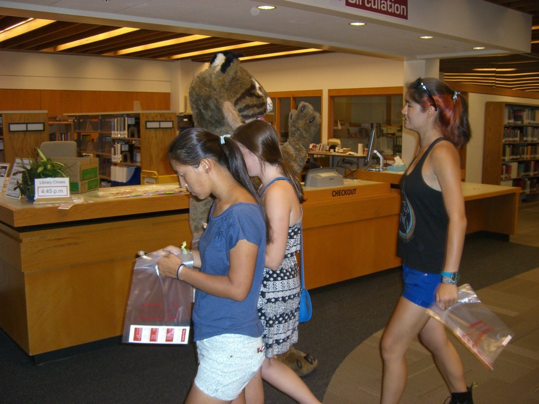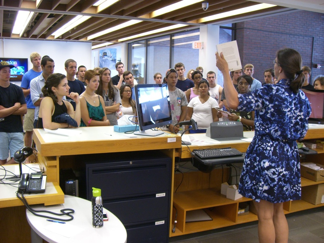 Ladd Library welcomed First-Year Students to Bates on Sunday, September 1, 2013. Students visited Circulation, Research Services, the Help Desk, the Peer Writing Center and Audio Services to see the range of services available, and the Bates Bobcat was on hand for pictures and high-fives.