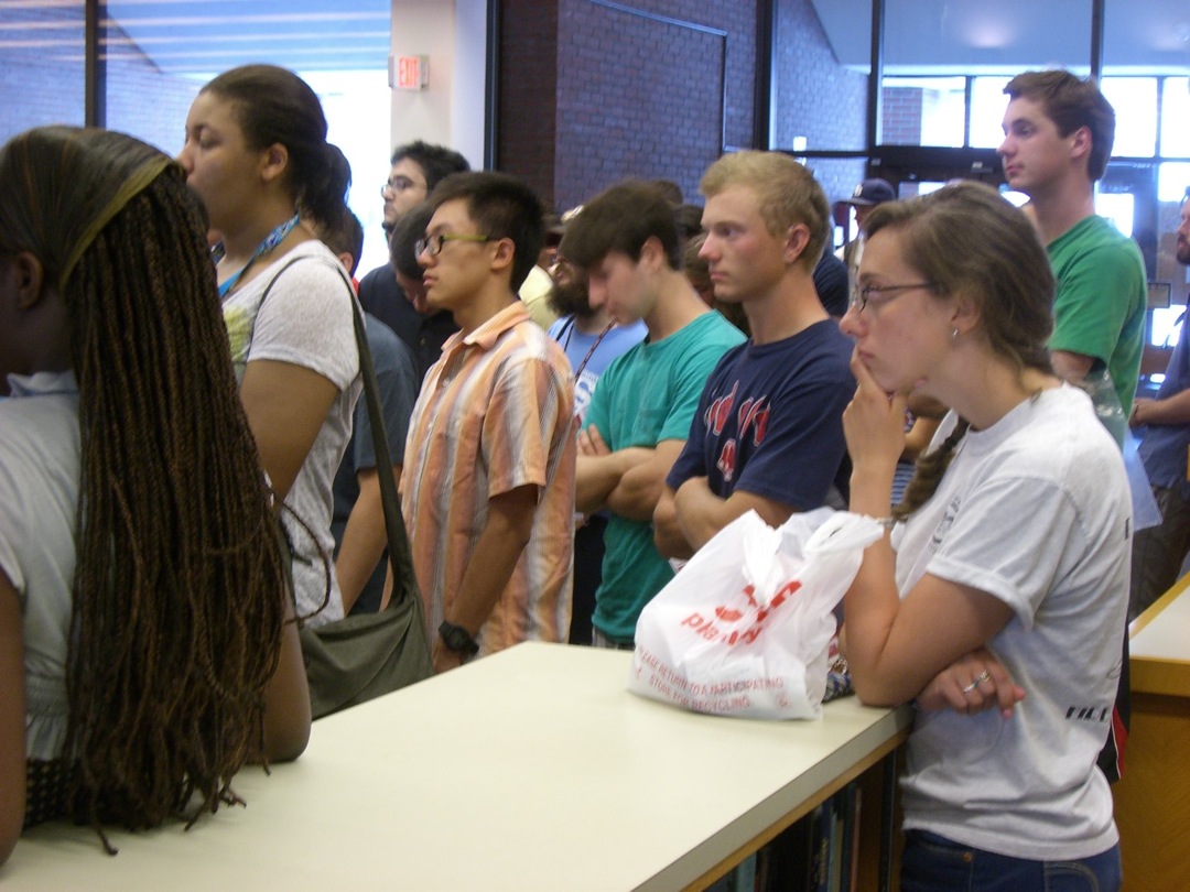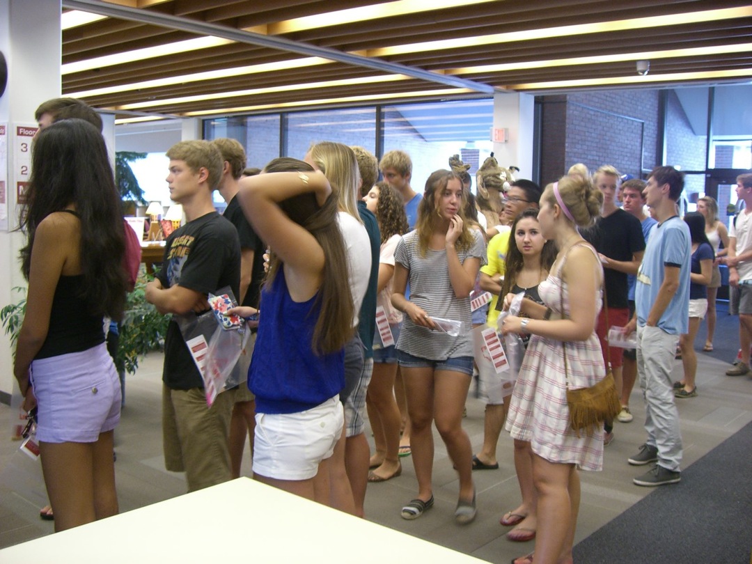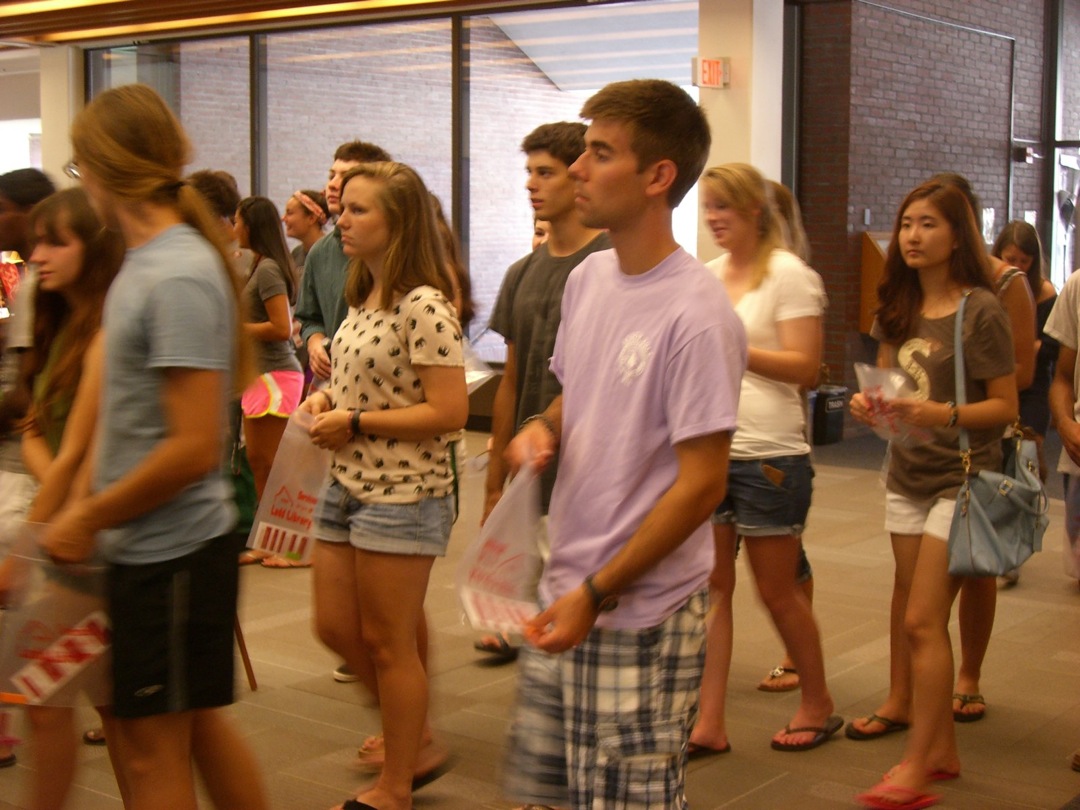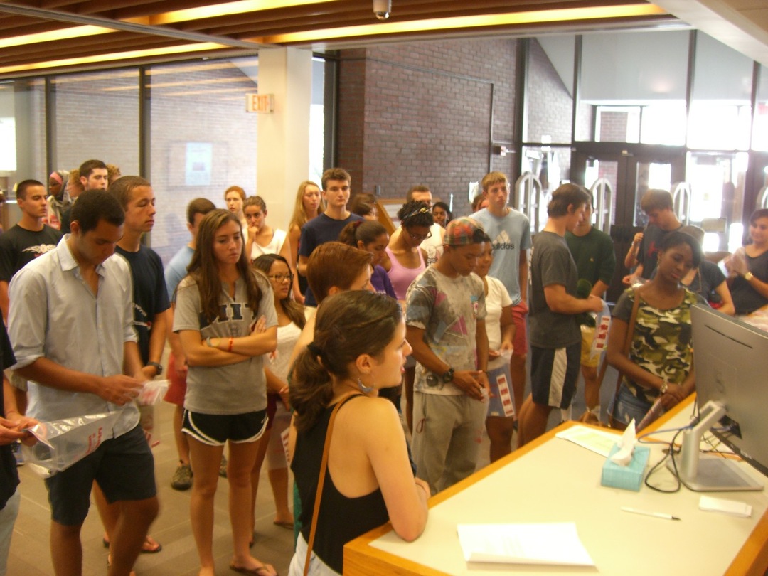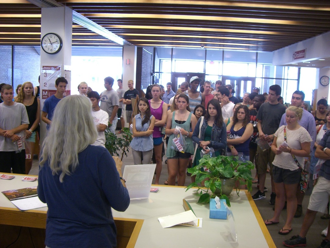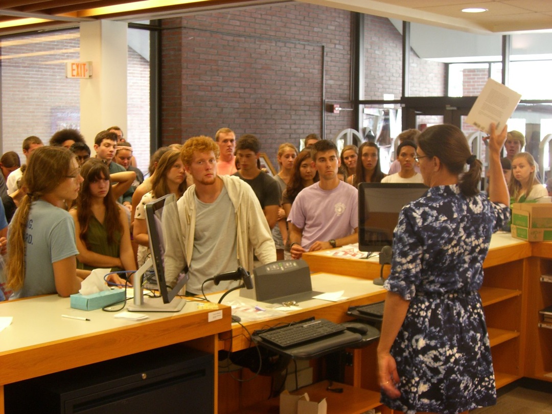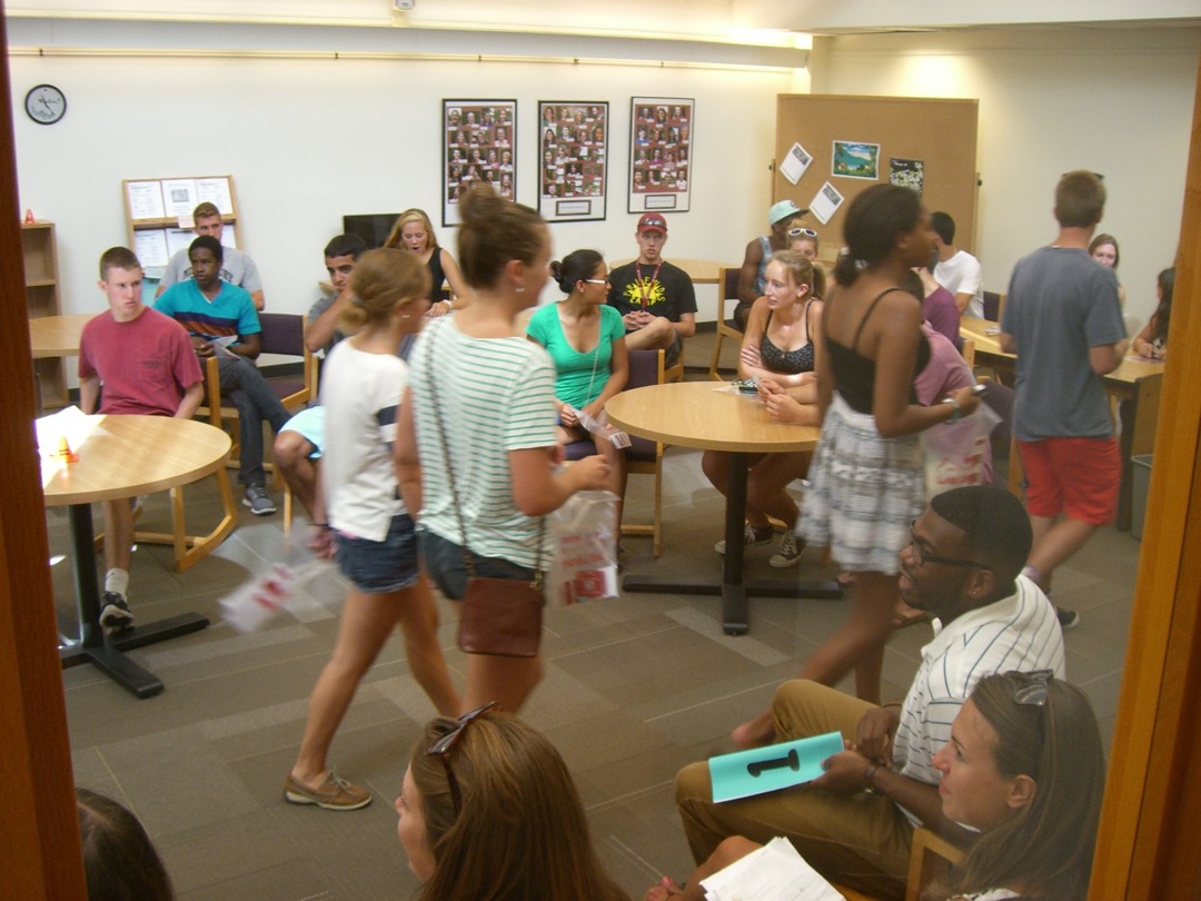 Ladd Library welcomed First-Year Students to Bates on Sunday, September 1, 2013. Students visited Circulation, Research Services, the Help Desk, the Peer Writing Center and Audio Services to see the range of services available, and the Bates Bobcat was on hand for pictures and high-fives.