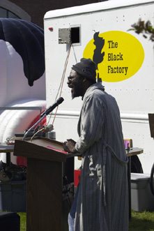 The Black Factory previewed at the Bates College Museum of Art last May before leaving for its first official stop at MassMoCA, where it was part of the exhibition Interventionists: Art and Social Change. It will be parked at Bates through the end of May, when it embarks on the 2005 nationwide tour.