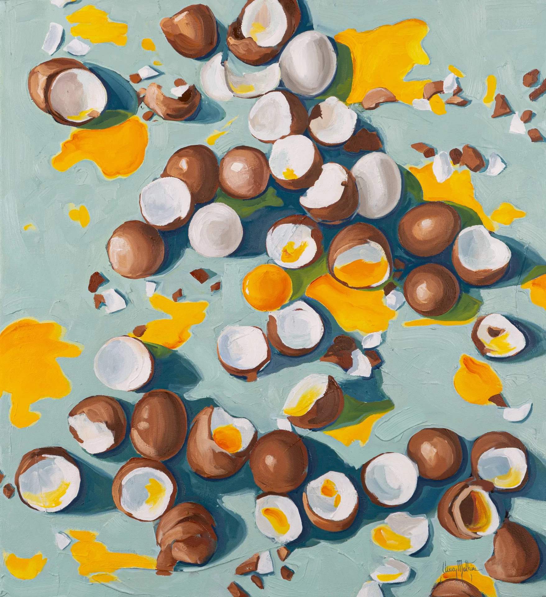 My body of work seeks to focus on the mundane as a worthy subject matter to explore light, color, and the beauty in the ordinary. I have focused on a single subject—the chicken egg— as it is a universally recognizable object that is often overlooked. Given that the chicken egg is so common, it is accompanied by a variety of connotations that the audience can examine with the work. Combined with the striking contrast of the yellow-orange yolk with egg whites, the chicken egg encapsulates the concept of finding intrigue and beauty in the mundane.