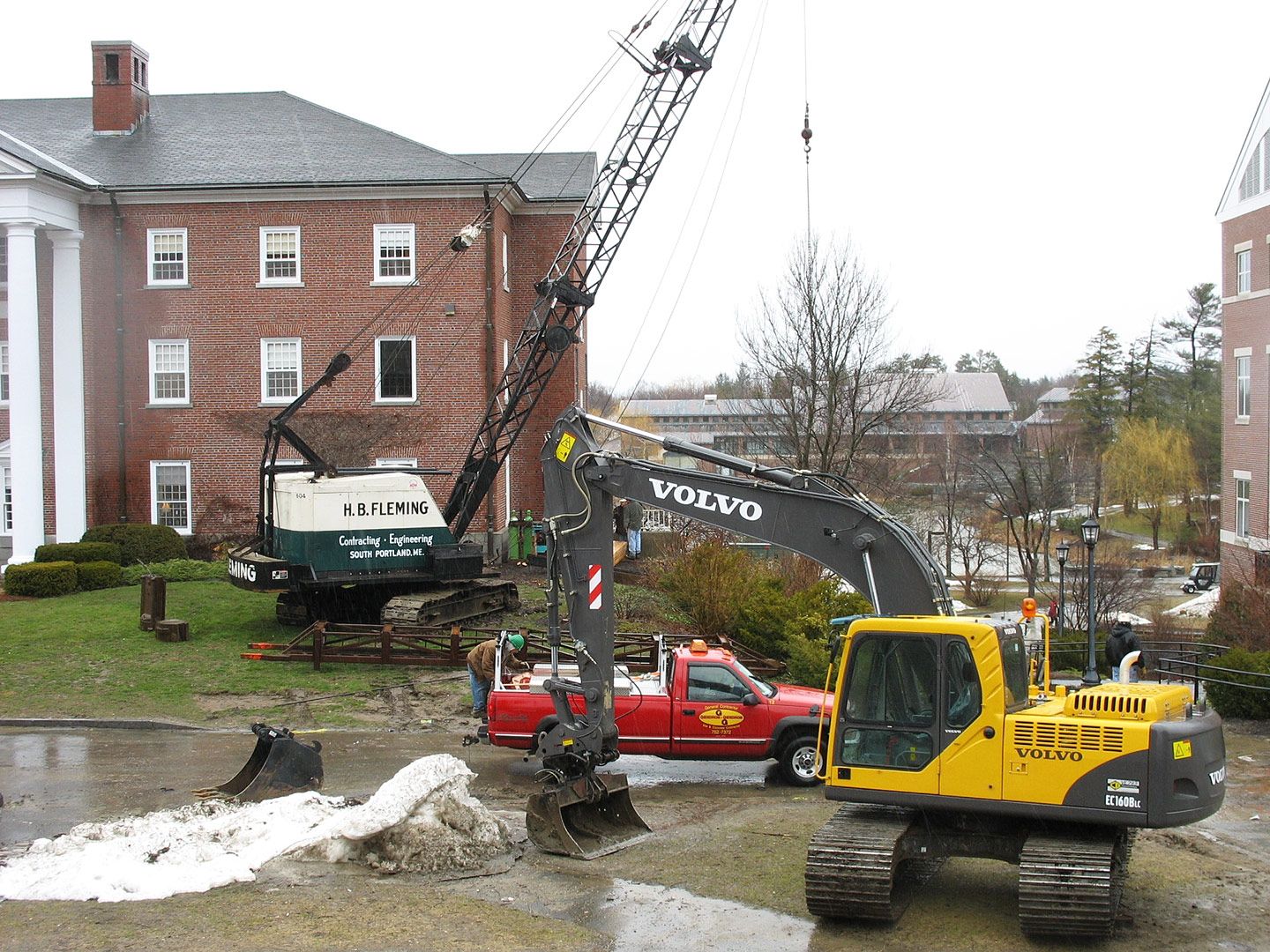 Sometime in the next few weeks, a big hole will appear near Pettengill’s main entrance. This latest excavation, Farnsworth explained, will accommodate several utilities projects. Drainage will go in at the deepest level. A new concrete steam vault for the campus-wide heating system will replace an old brick vault that was rehabbed during Pettengill’s construction.