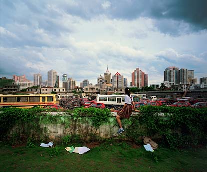 One of three women showing work in the exhibit, Xing Danwen uses manipulated color images to suggest the sterility of life in high-rise, controlled-access urban residential developments. “The dark side of the new ‘heaven’ in the skies may in fact be alienation and despair where the utopian ideals of the collective are erased,” Bessire writes in his introduction to the exhibition book.
