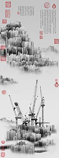 And in some of the show’s most surprising work, Yang Yongliang uses digital technology to combine images of skyscrapers and construction cranes into striking adaptations of the traditional ink landscape painting form.