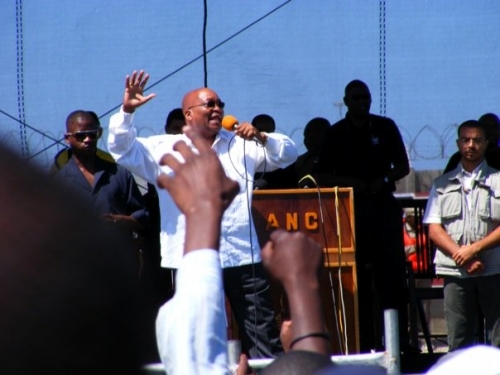 Last Sunday, a few friends and I went to see Jacob Zuma (the current president of South Africa and the president of the strongest political party, the ANC) speak at a rally. Since the national election is coming up this April, heavy campaigning has begun. In South Africa, instead of voting for one person as president you vote for an entire party, who then makes the appointment. For the first time since 1994 (the year apartheid in South Africa ended) the ANC is not the clear winner, so everyone on both sides is pretty heated about what will happen in the coming months. The rally was one of the best experiences I’ve had so far. Even though most of Zuma’s speech was in Zulu, it was great to be near so many who truly trusted this man with their own salvation. Throughout the day numerous phrases were chanted, including but not limited to: “Viva ANC Viva!”, “Viva Zuma Viva!”, “Roar Young Lions, Roar!”, “Amandla! Ngwethu!“, “JZ, JZ, JZ”. Musical artists and famous comedians within South Africa made appearances that drove the audience wild.