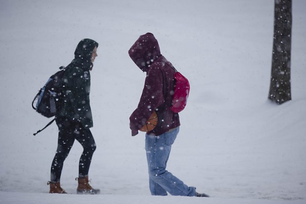 While this wasn’t a snowball/snowman type of storm, these photographs by Phyllis Graber Jensen and Mike Bradley show that Bates made the most of it.