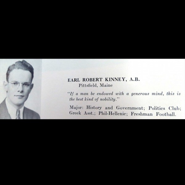 Born in Burnham, Maine, and raised in Pittsfield, Kinney was a Phi Beta Kappa graduate who earned money for college by working and living in the home of Lewiston mill industrialist Scott Libbey Sr.