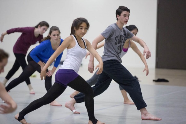 On the second day of the Bates Dance Festival’s Young Dancers Workshop, students in Heidi Henderson’s modern dance class begin a three week-process of “reveling in the specificity of complex movement sequencing, dancing large loopy phrases, and feeling joy.” (Phyllis Graber Jensen/Bates College)