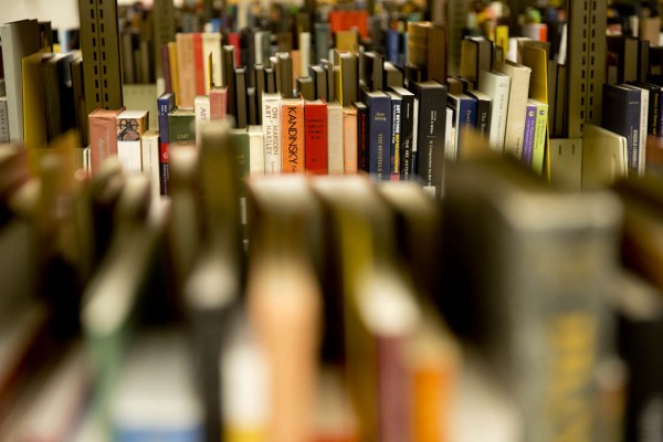 Digital age notwithstanding, the George and Helen Ladd Library has 600,000 catalogued volumes, including these books about fine arts. (Phyllis Graber Jensen/Bates College)