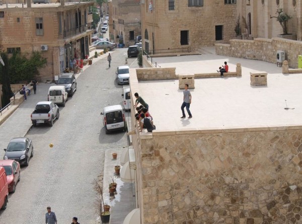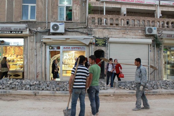 Road construction in Mardin, a city in southeast Turkey. With the economic boom in Turkey, many cities across the country are investing in infrastructure projects. Sometimes these projects inconvenience people, as the workers here piled paving stones on the sidewalk while they worked on the road. Phillip Dube '16/Bates College.