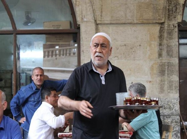 A waiter serving Turkish tea at a cafe in Urfa, southeast Turkey. Cafes are places to socialize, play games and have some beverages. Phillip Dube '16/Bates College.