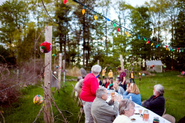 The students hand-made the dinner decorations, including these felt orbs. “It’s a beautiful day and a feast on a farm,” said dinner guest Jeff Gould of Portland.