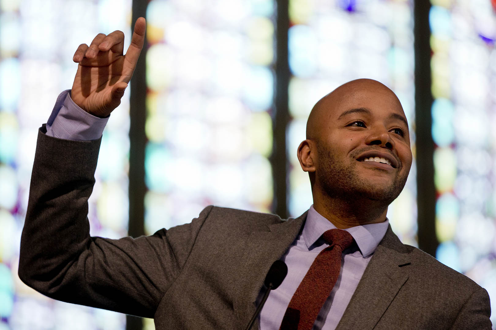 Peniel Joseph, Tufts University historian and author, delivers Bates’ 2015 MLK Day keynote address. (Phyllis Graber Jensen/Bates College)