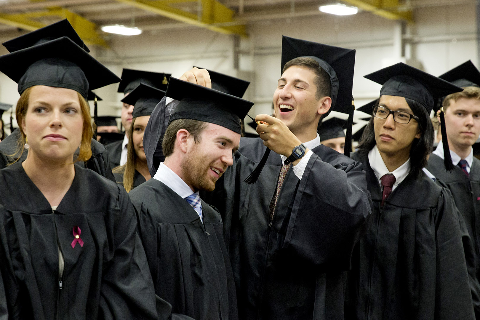 For 484 members of the Class of 2015, four years of study culminated in several joyous hours in Merrill Gymnasium, the site of Commencement this year as rain showers fell outside.