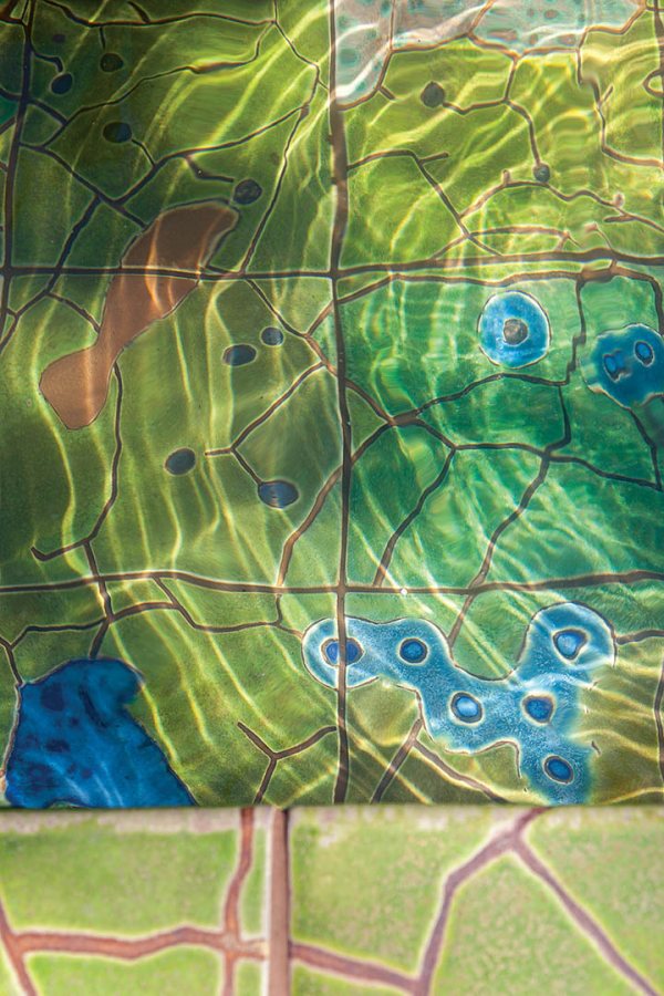 “My two inspirations for the piece are the formal boxwood hedges I see around town and the wonderful green glazes used on old Italian tiles, jars, and garden ornaments,” Heroux told the Charleston Parks Conservancy.