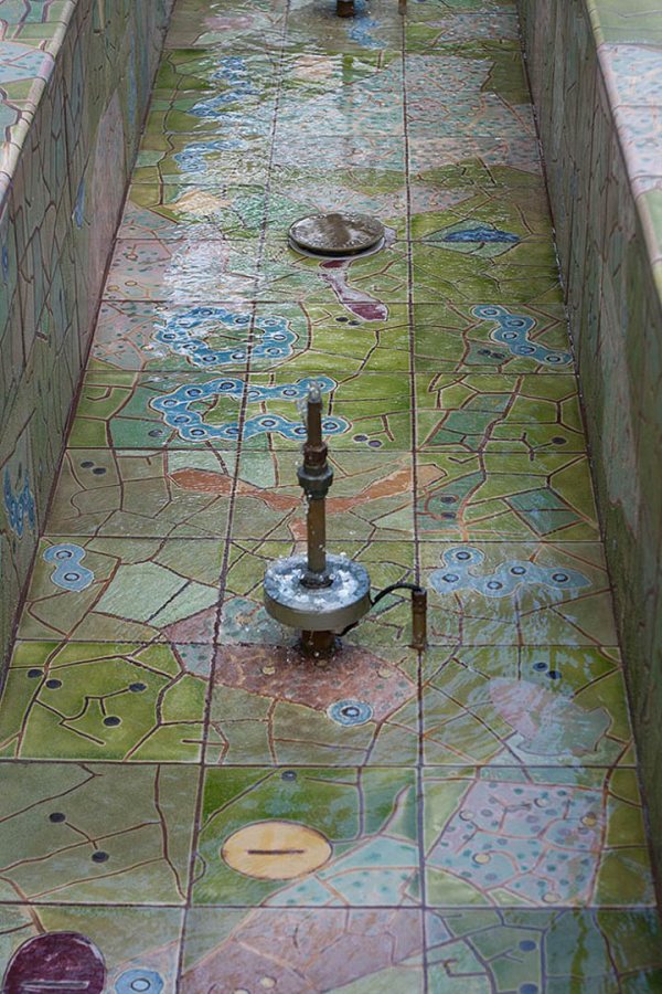 Adding to his national reputation, Heroux contributed a set of decorative tiles for a park fountain, telling Spence that he’d been working on the commission, designing, glazing, and hand-painting 370 ceramic tiles, for more than a year.