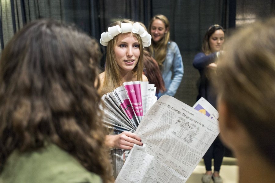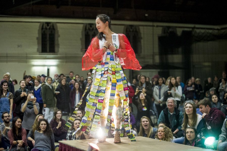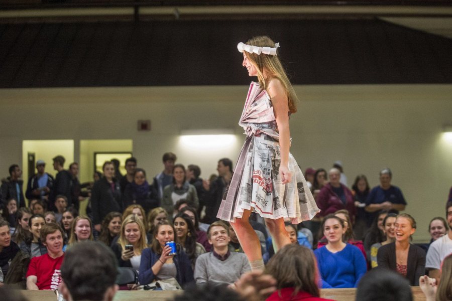 Held in the packed Gray Athletic Building, the ninth edition of the show once again featured wearable runway designs created by students from trash, recyclables, and junk. Kirk Read, professor of French and francophone studies, was the MC.