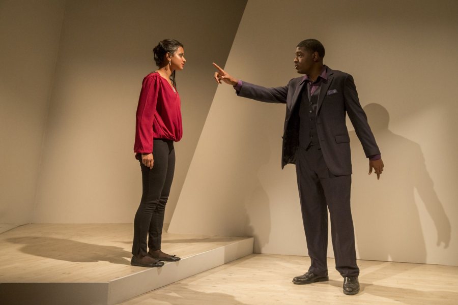 Jennifer (Sukanya Shukla '20), who is having an affair with Simon (Brennen Malone '17), are at a pivotal moment in Tomorrow in the Battle. (Phyllis Graber Jensen)