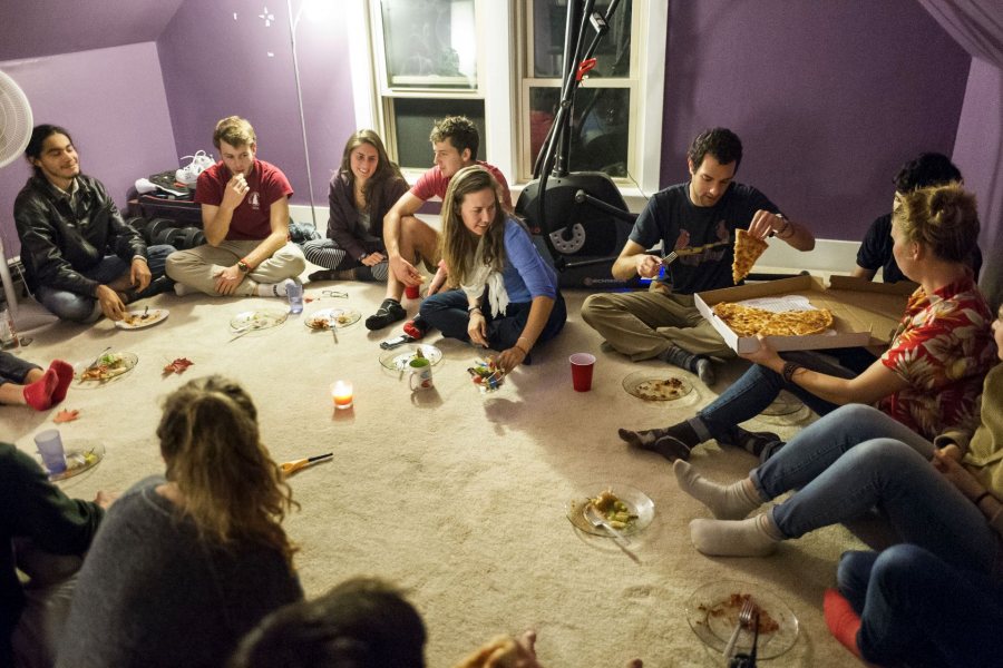 At Hearth, students can find themselves in an intimate setting with students they don’t know. “I’ve heard students say it’s a place where they feel that cliques dissolve,” says the Rev. Brittany Longsdorf, the college’s multifaith chaplain, who hosts the dinner at her Ware Street home.