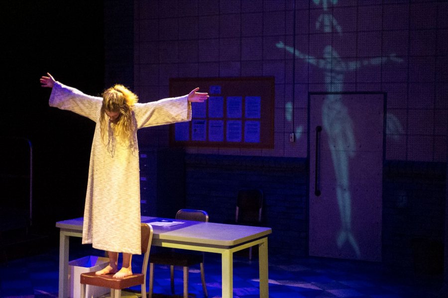 Lila Patinkin '20 of Chicago plays "The Little Jesus" in a scene from The Pillowman.