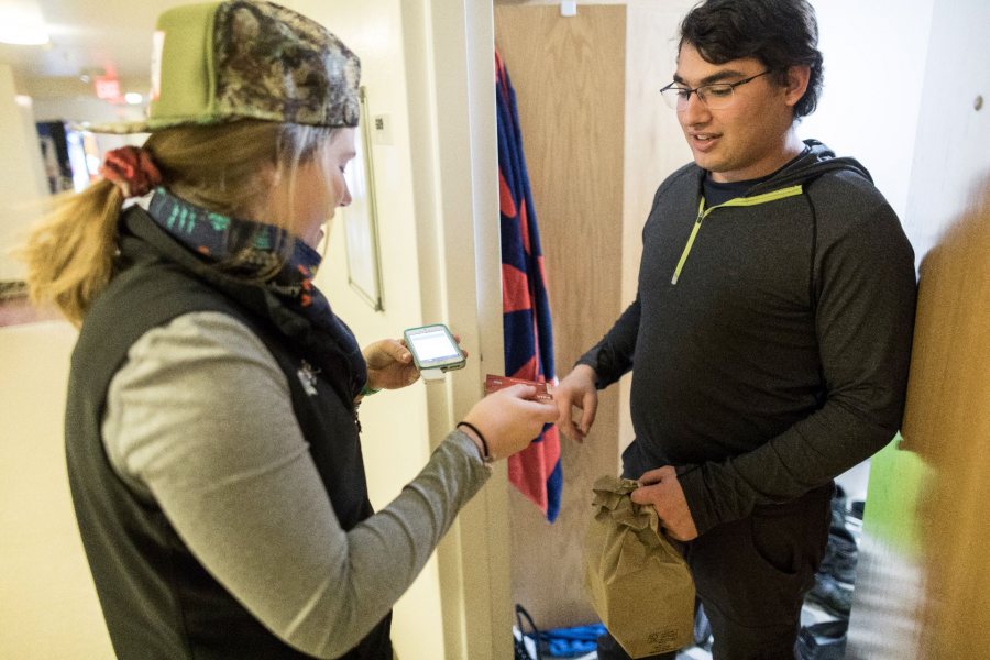 Wednesday evening, as the first week of classes awakened campus from its winter slumber, Kurt Niiler ’18 of Freedom, N.H., and his Bobcat Den Delivery staff already had their work cut out for them. As soon as their student-developed app was turned on, the orders “started popping,” says Niiler. “Eleven in the first 10 minutes!”