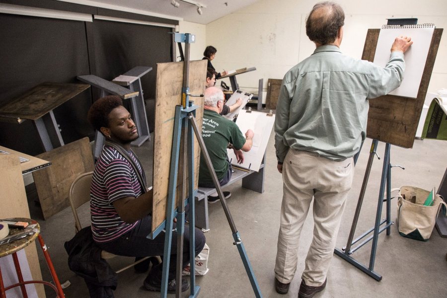 The informal aspect of the drawing session appeals to students like Deshun Peoples ’17. “It’s helpful to have this uninterrupted session of just drawing the figure consistently. It helps a lot in a way that is different than class time,” said Peoples, an art and visual culture major from Chicago.