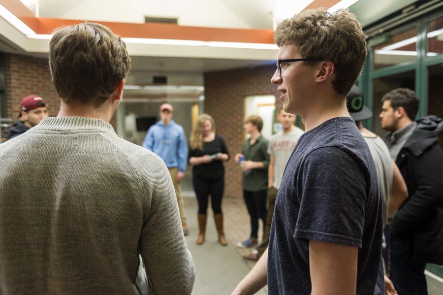 Co-president Maddie McLean ’17 of Hood River, Ore., enjoys the role that music plays at Bates. It’s a very inclusive, fun, and kind community. We all support each other and we all go to each other’s concerts,” she said. Declan Chu ’17 of Winthrop, Maine, adds, “We push each other to be better.”
