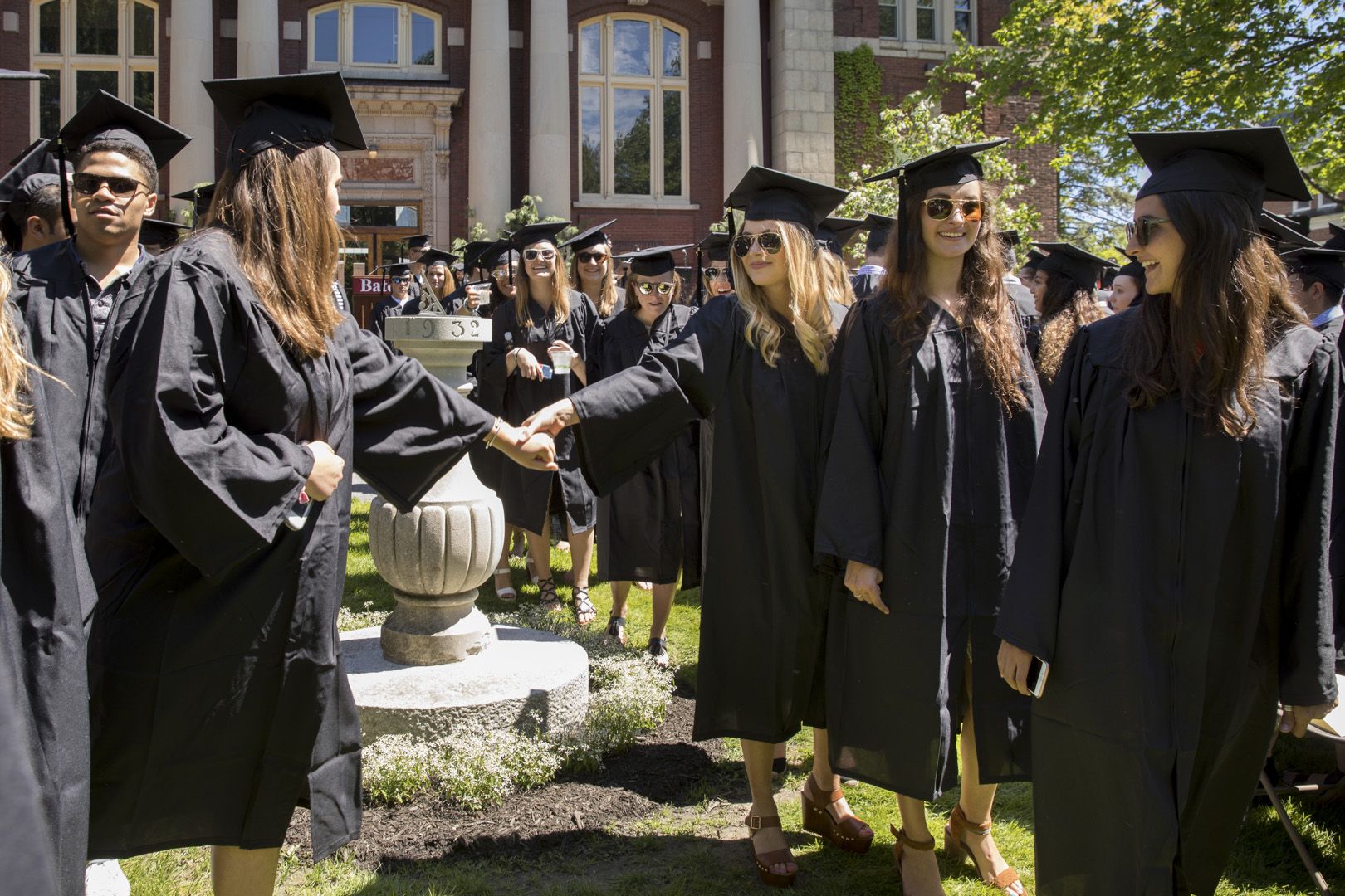 Seniors reach out to one another during Baccalaureate on May 27. (Phyllis Graber Jensen/Bates College)