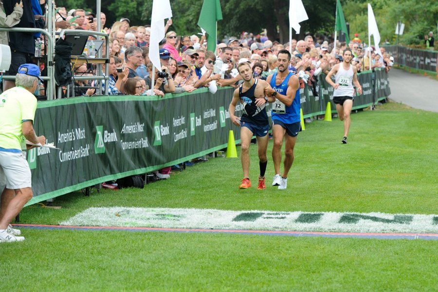 Although the pair were running in 22nd and 23rd place overall at the time, the stakes were still sky-high: Whoever finished ahead of the other would win the coveted men’s Maine-resident division of the race. And as they came to finish, Gomez stopped short and let Orach literally fall into first place. Then Gomez walked over the finish line, second.
