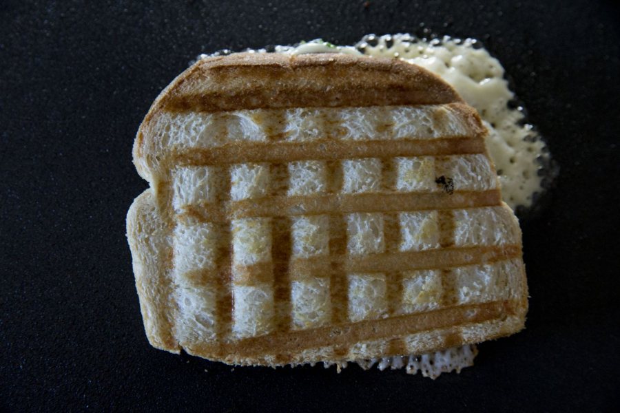 Students who stayed on campus during Thanksgiving break could stop by the Multifaith Chaplaincy for a “Fancy Grilled Cheese Feast” that promised “silliness, friendship, and the opportunity to get creative by constructing their very own gourmet grilled cheese." (Phyllis Graber Jensen/Bates College)