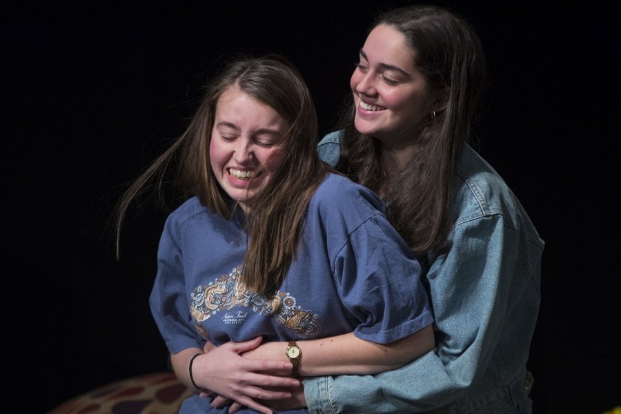 Madison Shmalo ’19, left, plays Callie Pax and Maya Wilson ’20 plays Sara in "Stop Kiss," a Robinson Players play directed by Alison Greene ’20. (Phyllis Graber Jensen/Bates College)