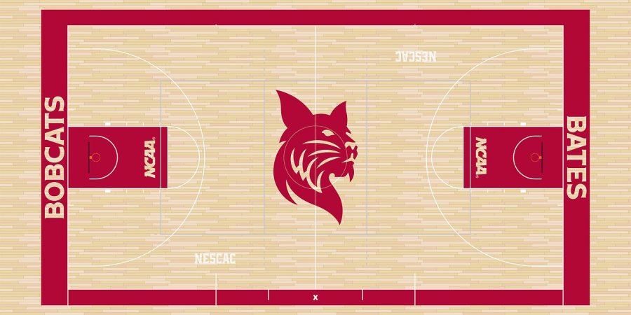 Replacing the floor, adds Director of Athletics Jason Fein, gives Bates not only a brand-new, state-of-the-art playing surface, but a showcase for current branding. Notably, the urbane Bobcat mascot image introduced in 2013 will take pride of place at center court, now occupied by the so-called split B. Logos for the NCAA and NESCAC will be also be added to the layout.
