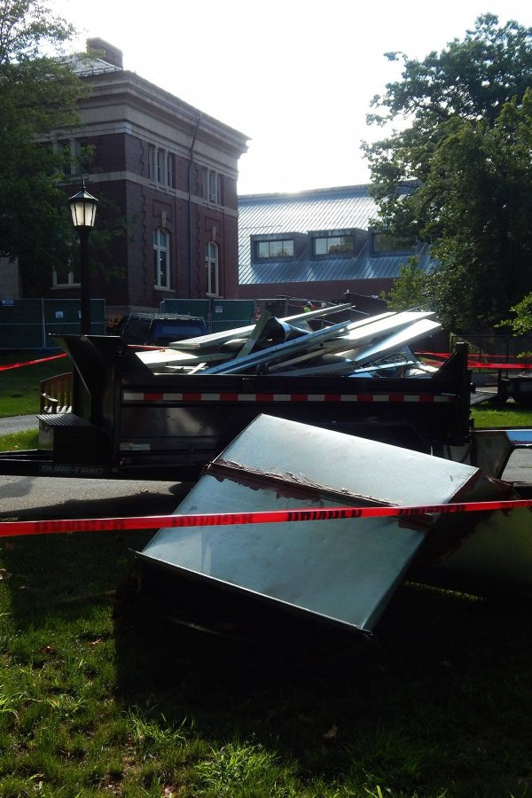 Shown with our biggest fan, here’s the future home of Campus Construction Update, pictured on Aug. 9. (Doug Hubley/Bates College)