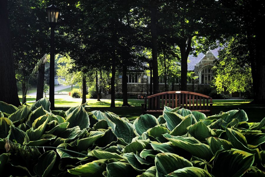 July goes out with a lush green rush on the Historic Quad. (Phyllis Graber Jensen/Bates College)