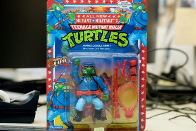Then there’s a Ninja Turtle, an updated version of a toy that he had as a boy, who’s dressed as a Union soldier and reflects his childhood interest in the Civil War. One of his two bobbleheads is a memento from sociology department colleague Mark Owens; the other was a giveaway from the Xander Boagerts Boston Red Sox Splash Bobblehead game he attended with family members this summer.